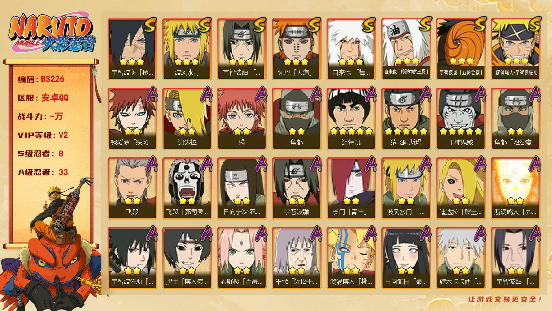 V7/战力645W/S忍9/A忍28/通灵兽16/4星干柿鬼鲛
