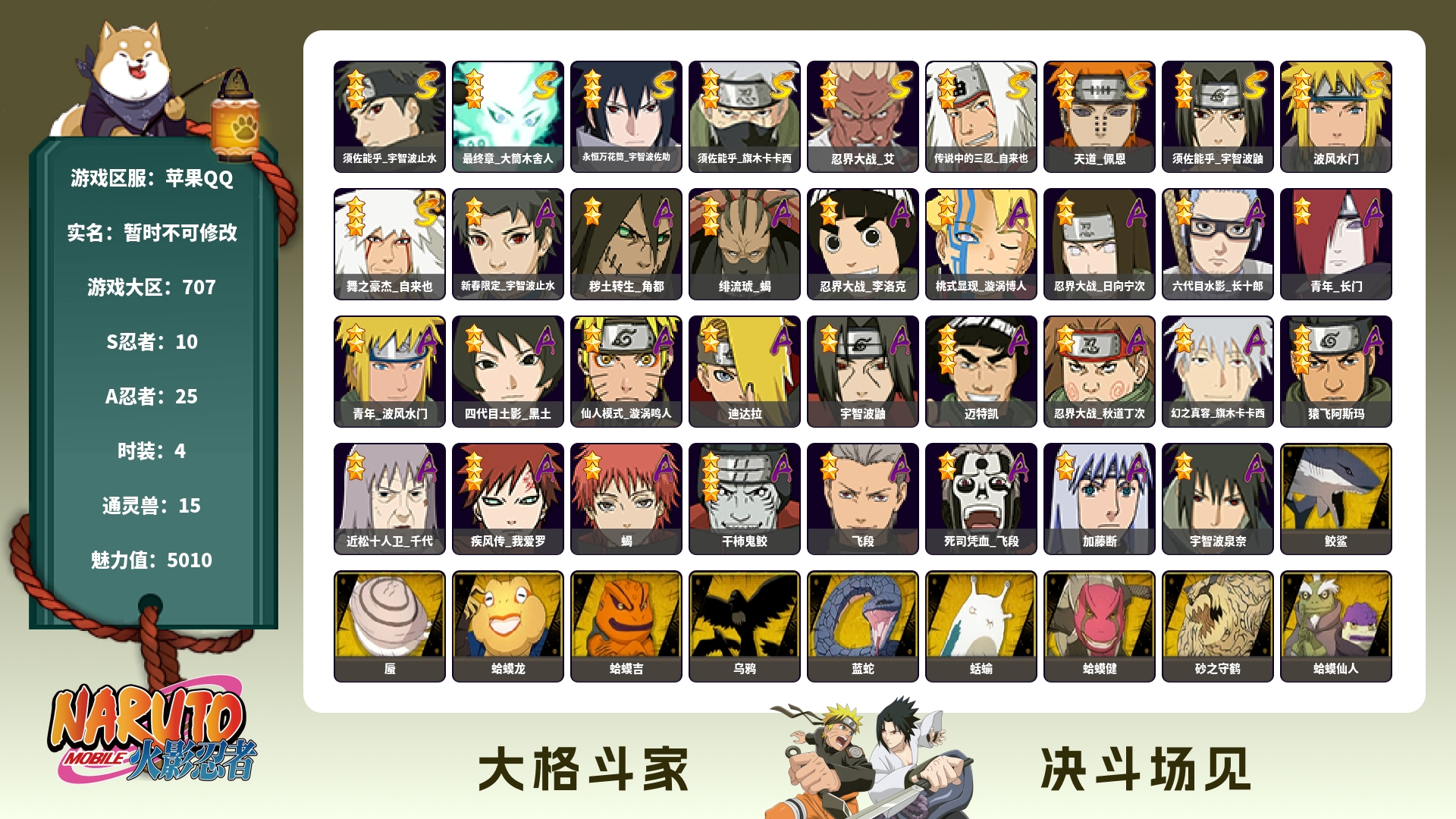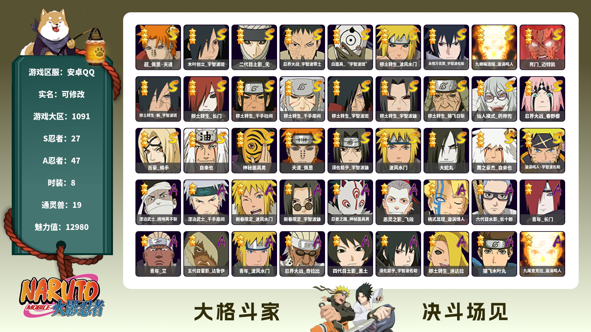 角色等级145 金币9000 战斗力9000000 S忍27 A忍42 5星S忍者21 12 段位暗部