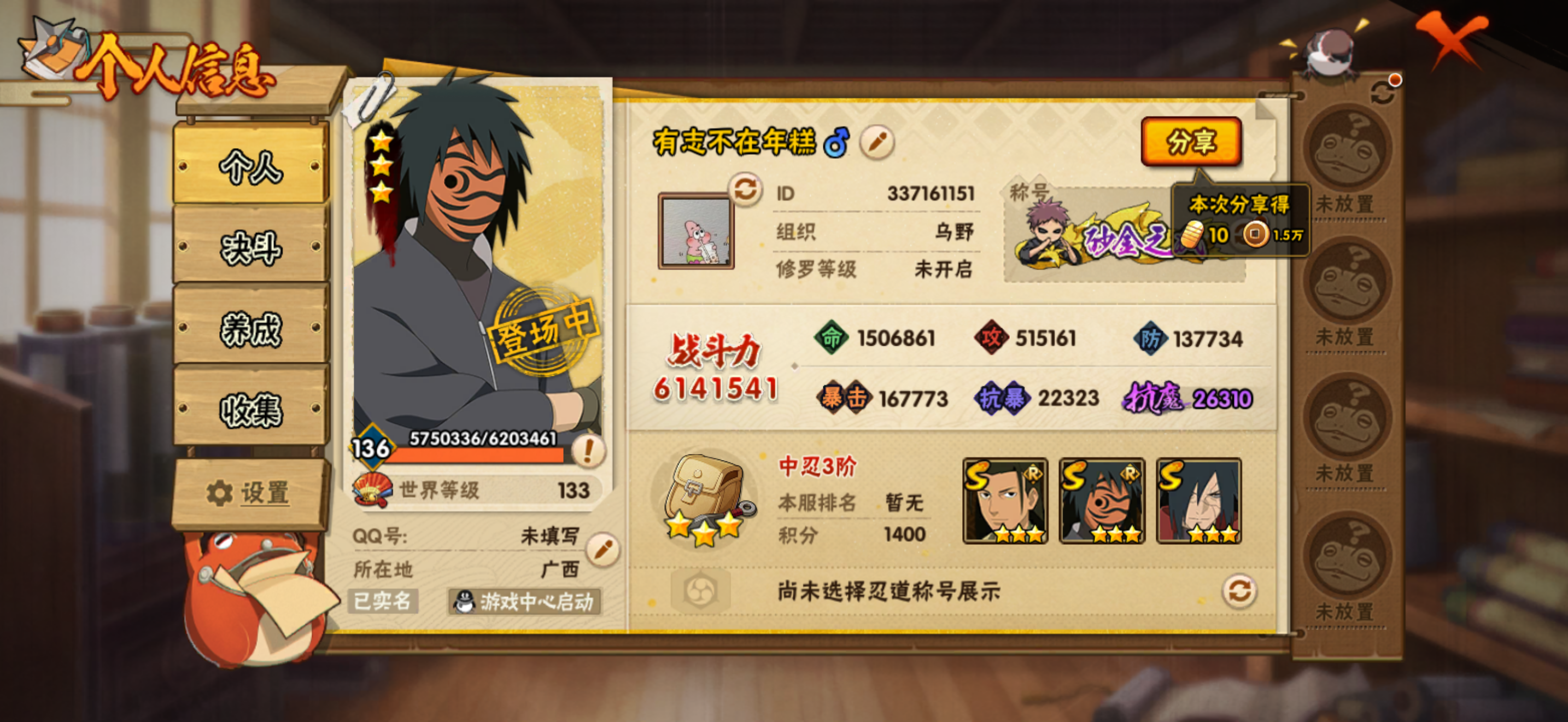 火影忍者【苹果QQ】苹果QQ🔥总计400抽 3S+6万金币🔥豪杰自来也s+水门s+佩恩s+金币 6W+20高招卷🔥