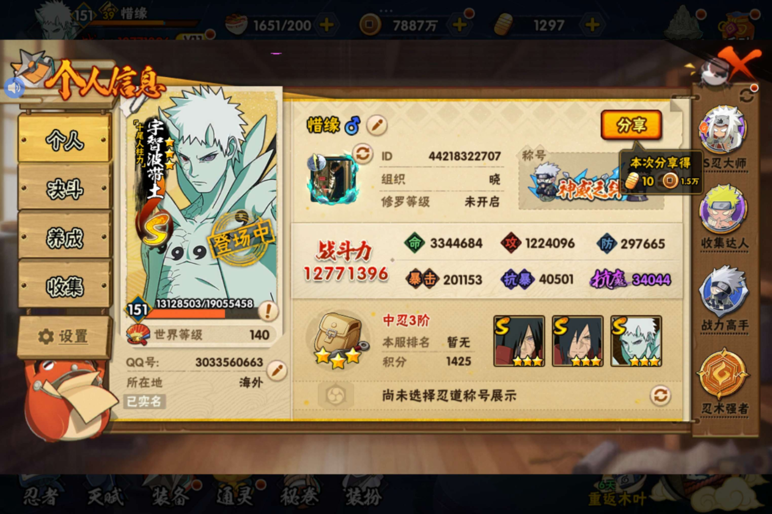 安卓QQ-新手入坑免肝免氪首选号-S忍者数:5- A忍者数