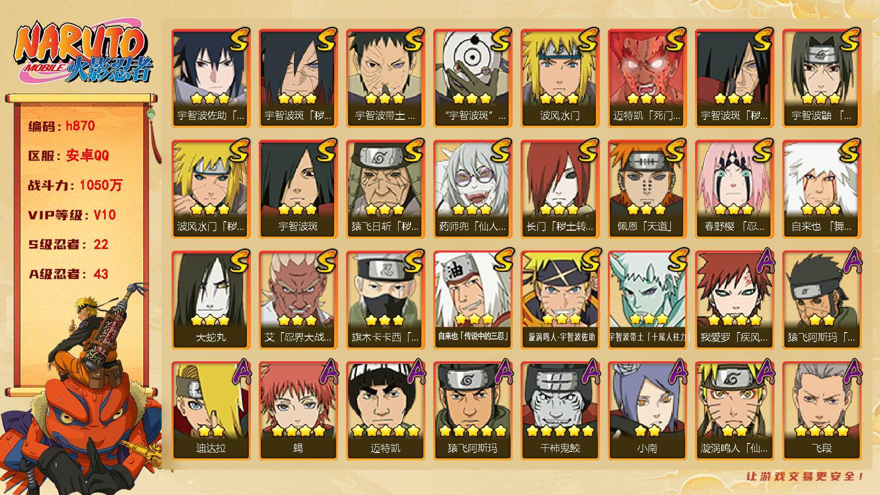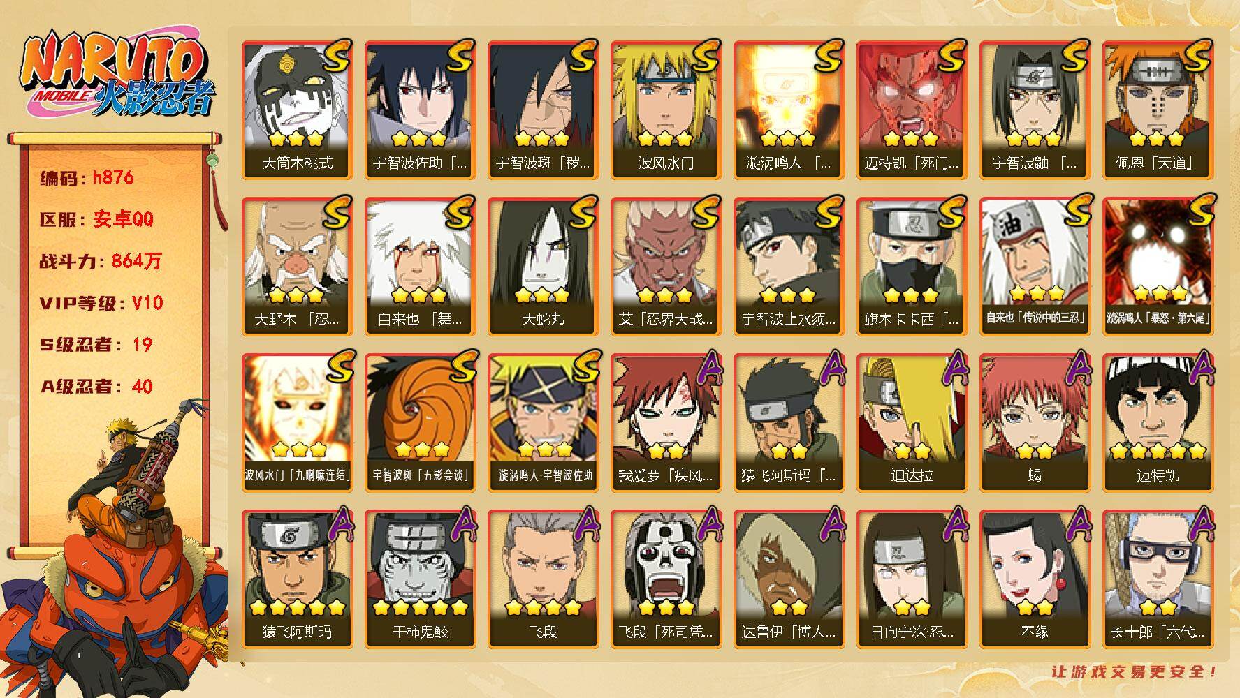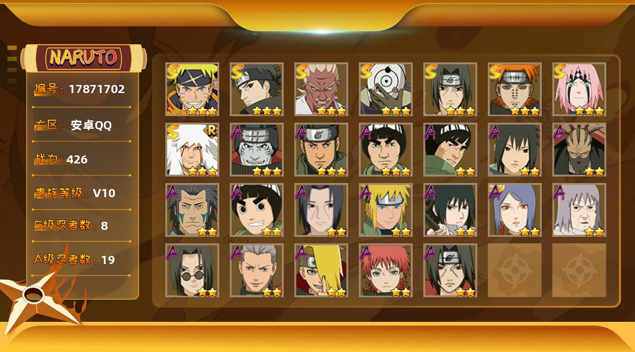 V4/战力460W/S忍5/A忍24/通灵兽14/3星宇智波