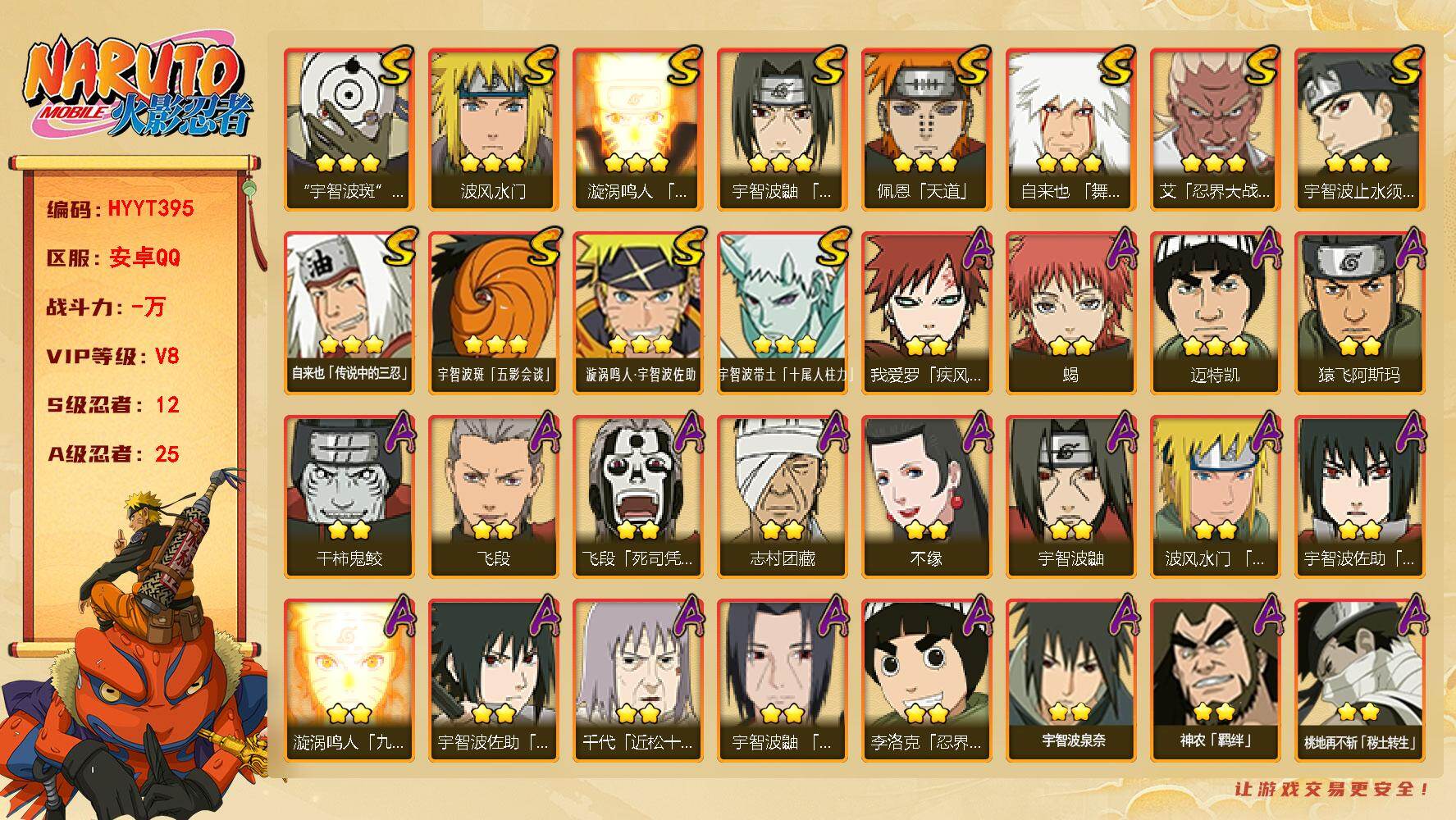 安卓qq/千万战力质量v11/198忍者2个/S忍者数:2