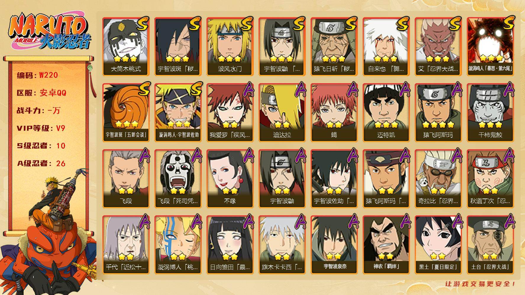 V9/S忍12/A忍38/4星干柿鬼鲛/2星大野木「侠隐江湖」/