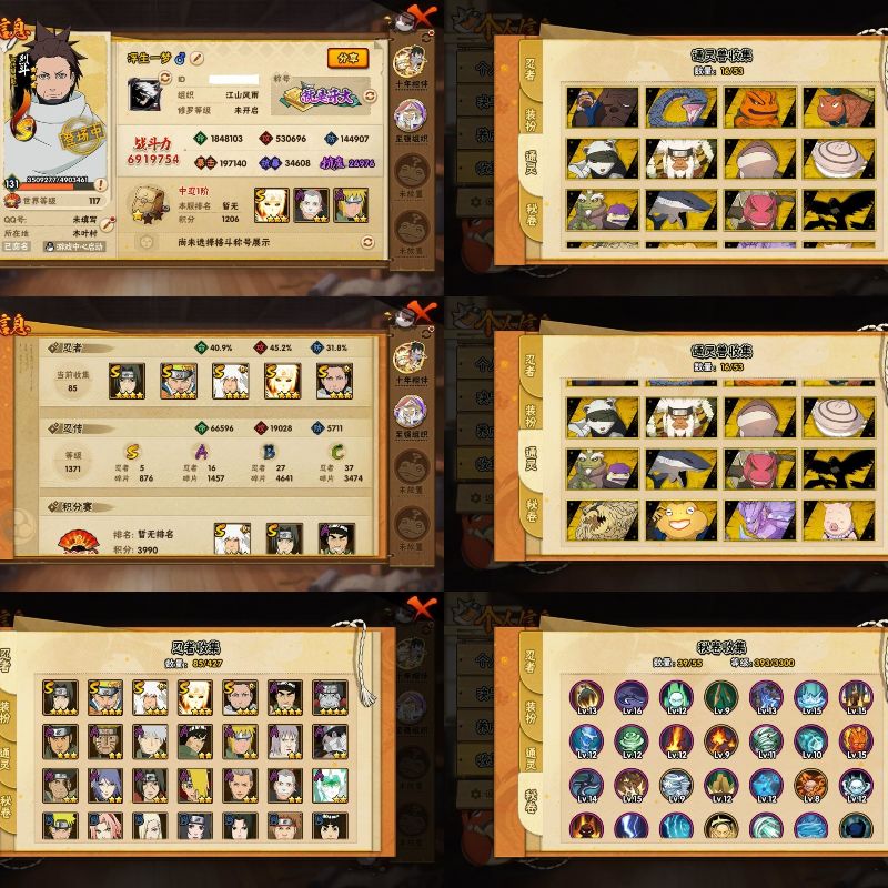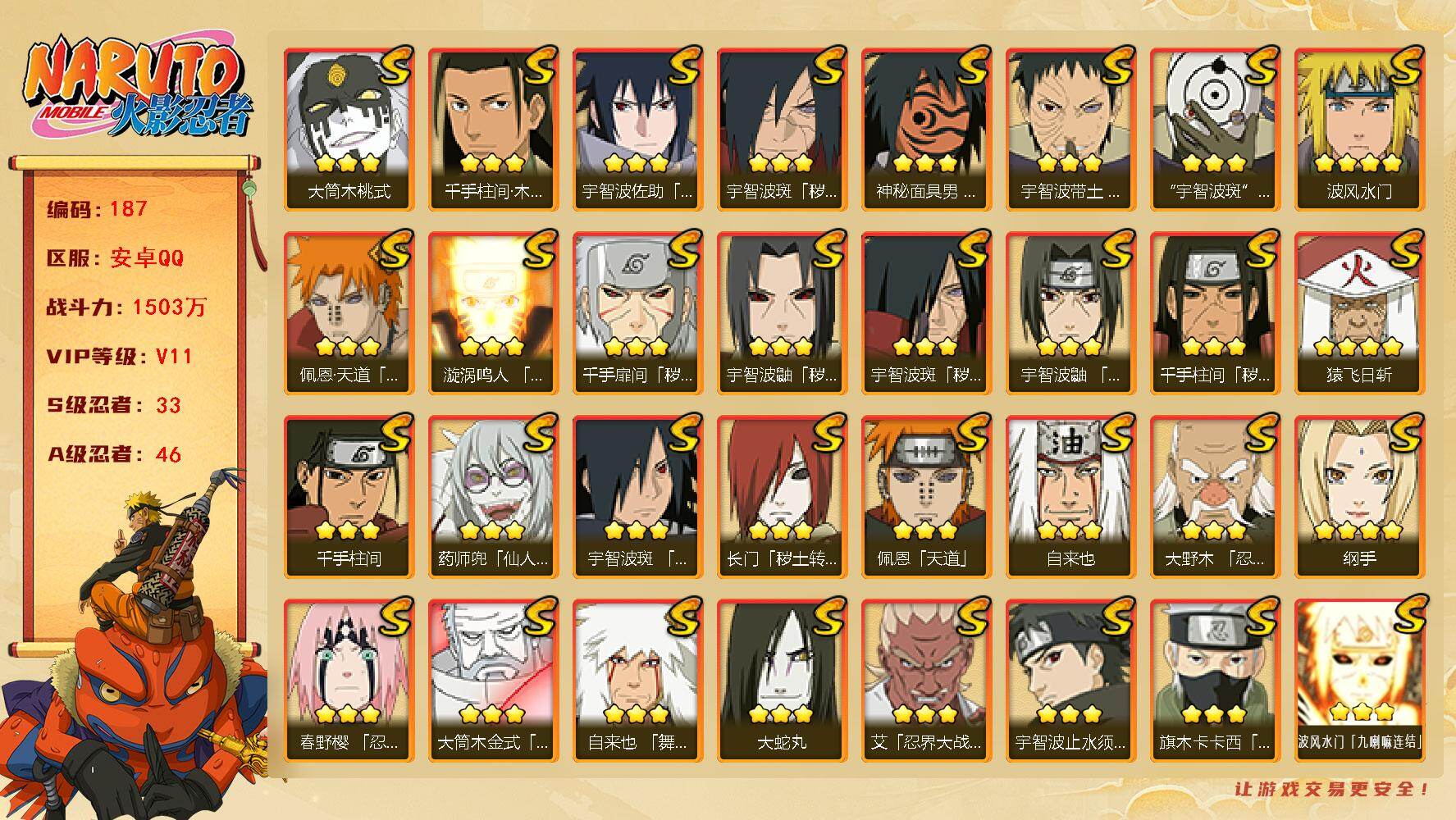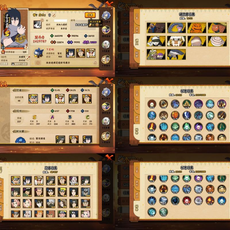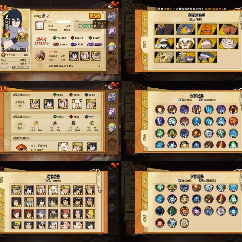 6S忍/15A忍/战力196W/V1/区服3064 【S忍者】宇智波佐助「漩涡鸣人」,自来也「舞之豪杰」,宇智波鼬「