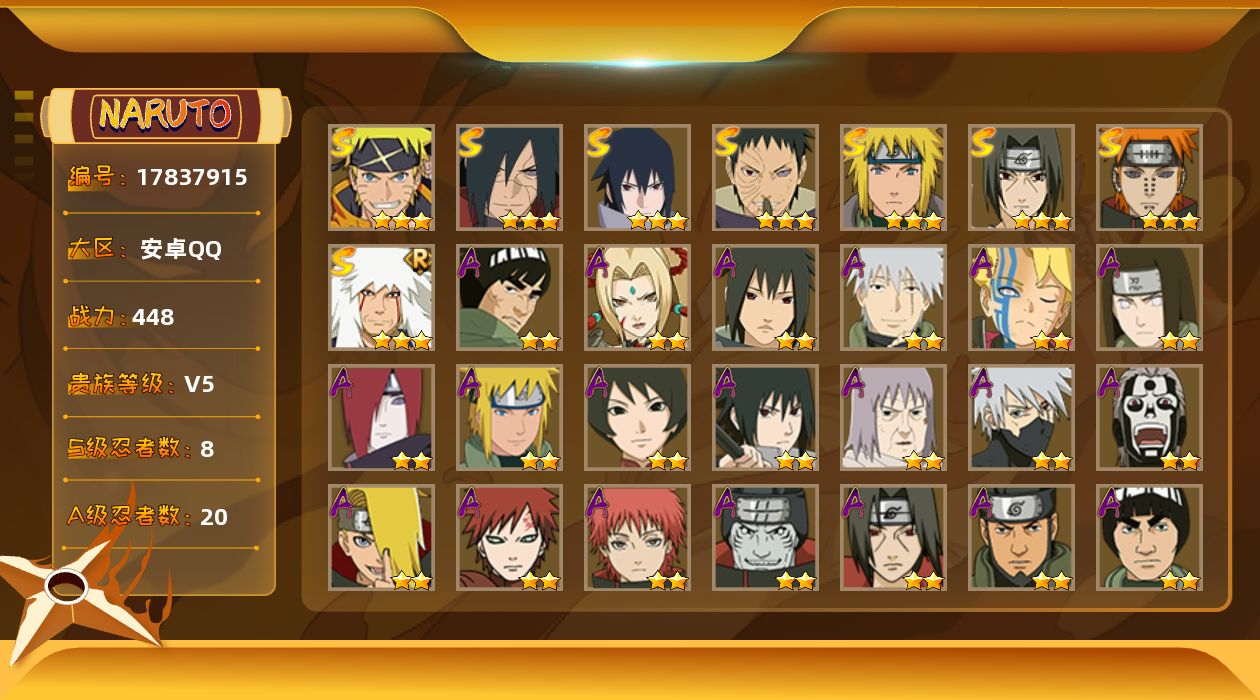 安卓qq/质量v14/两千万战力/198忍者22个/298