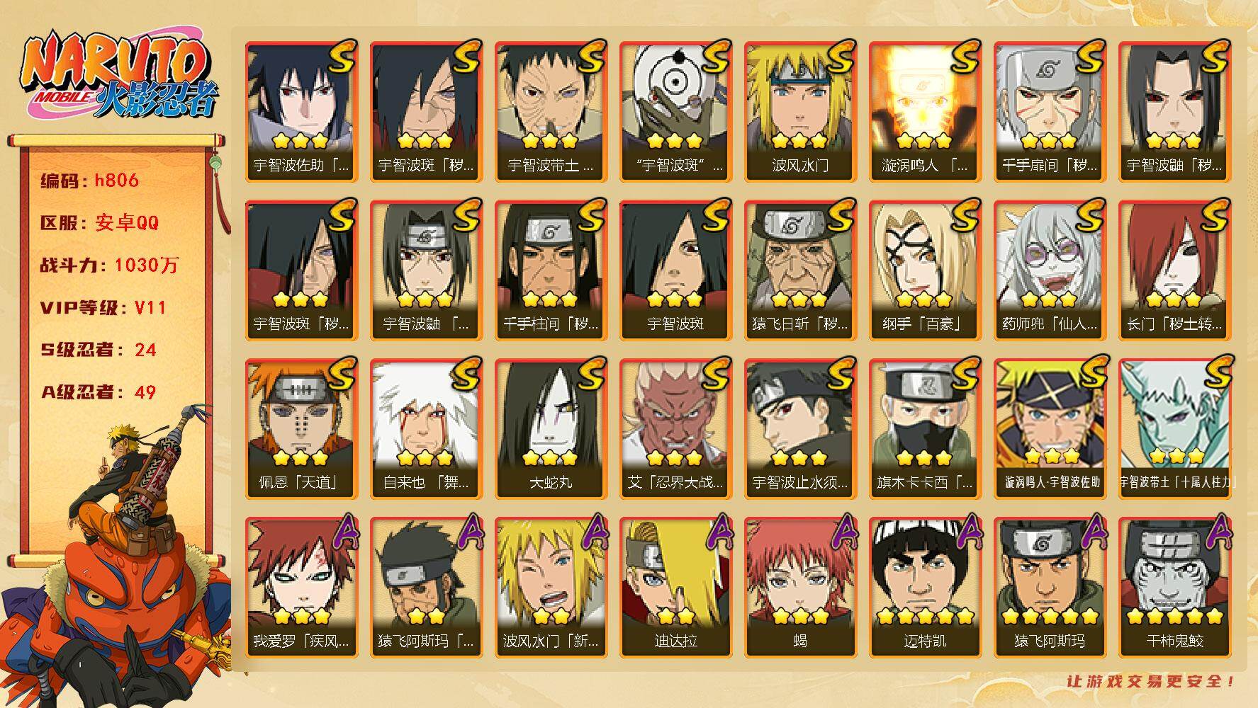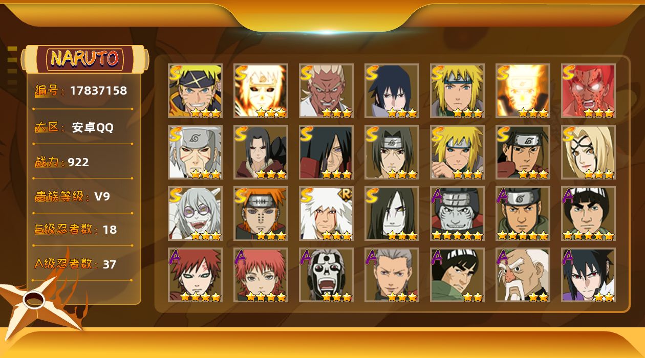 安卓qq-可二次-1个198-新手入坑号-S忍者数:11-