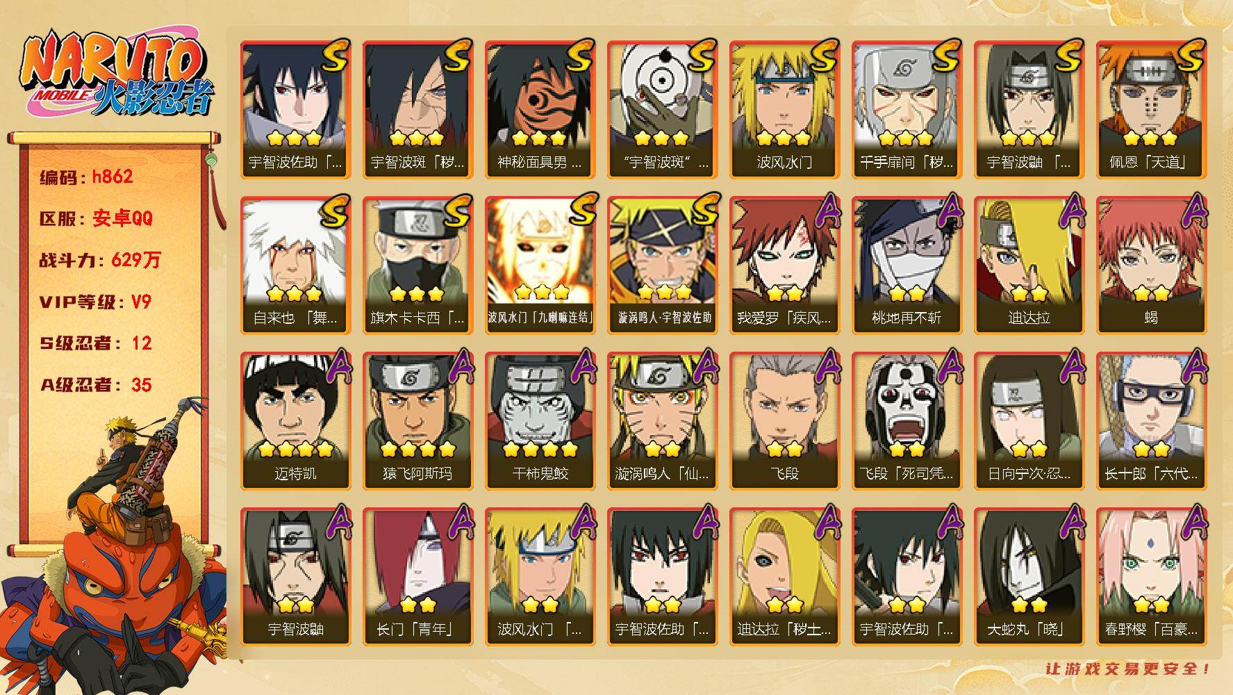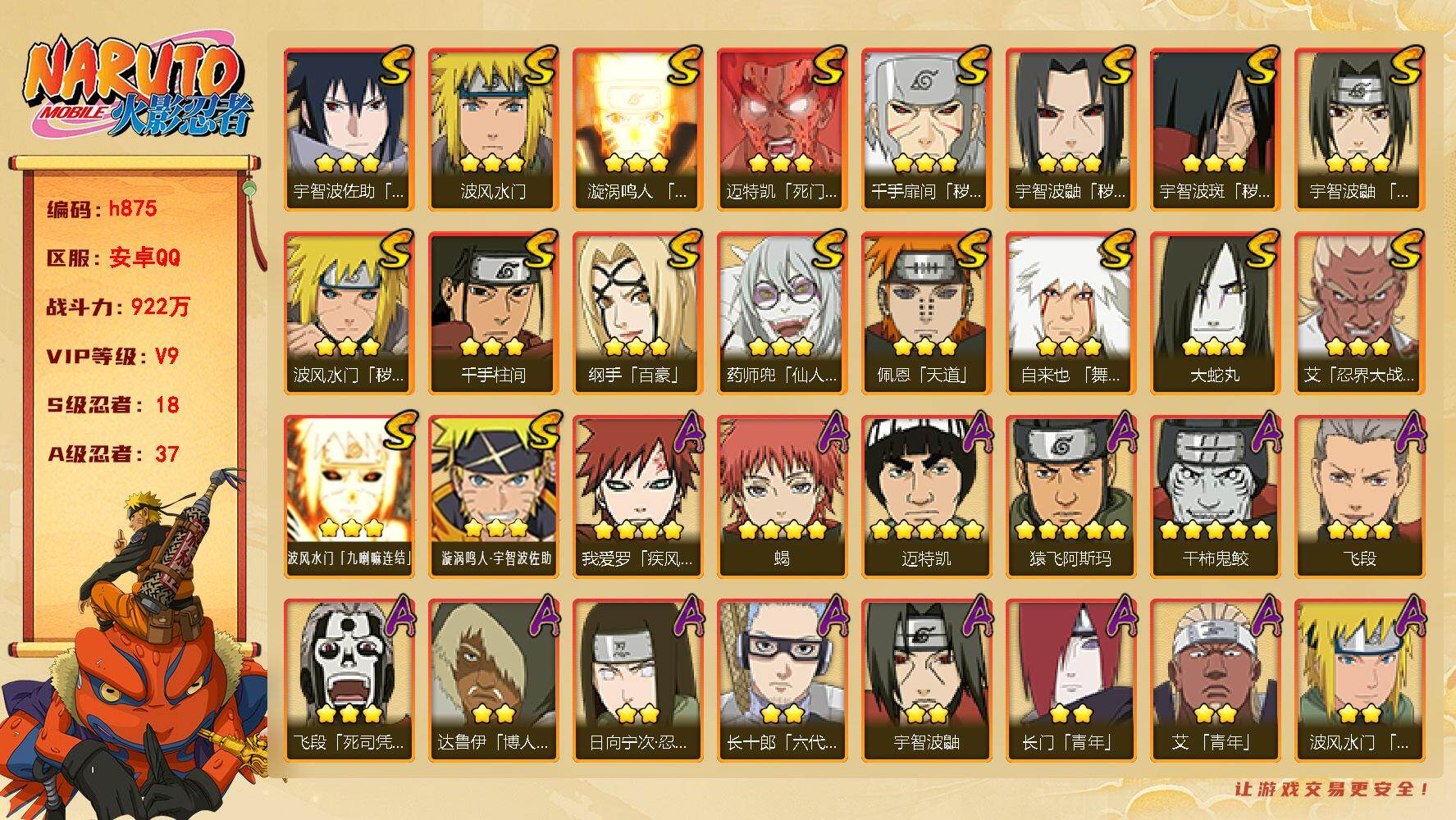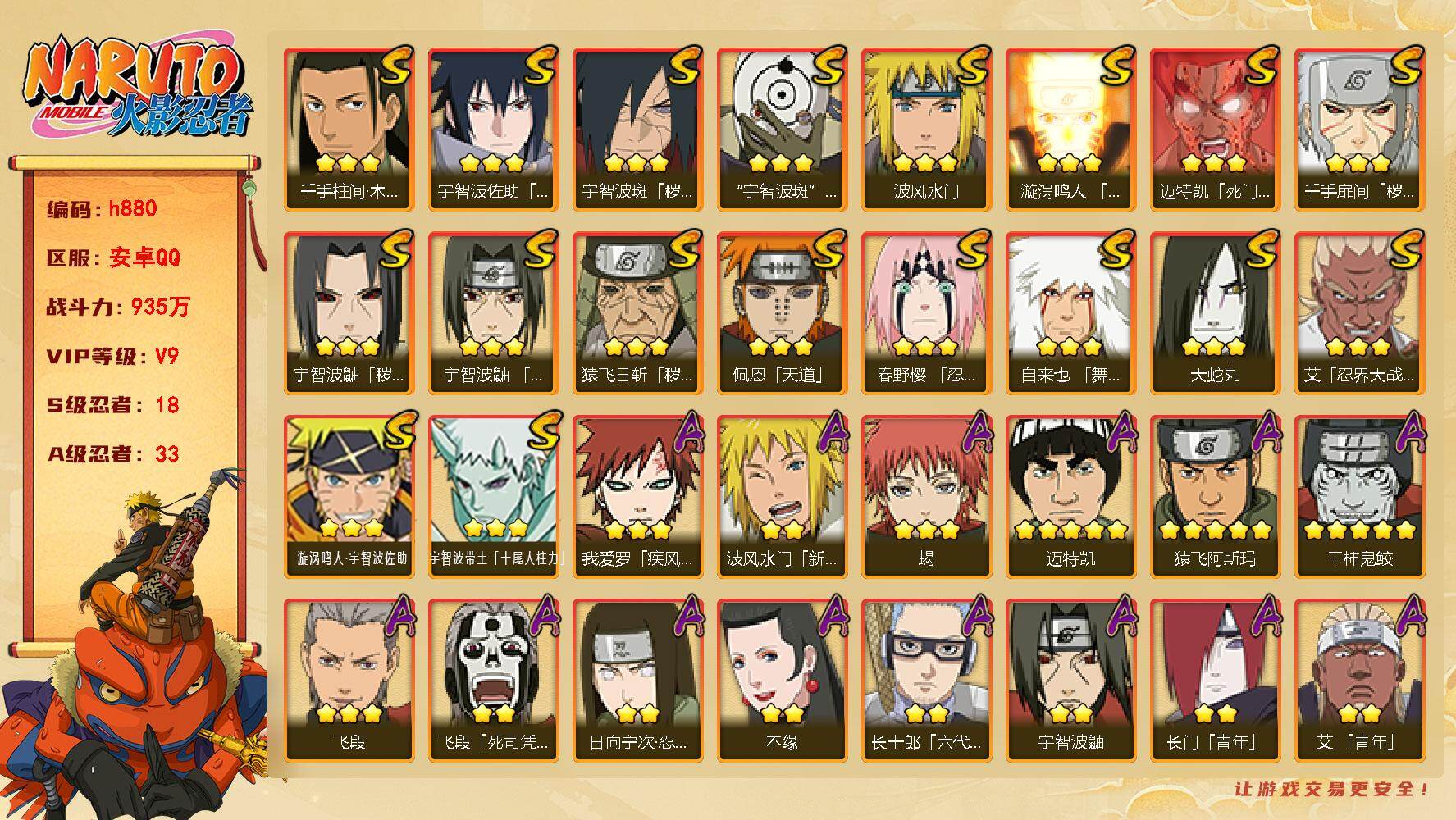 安卓qq/可二次/质量v13千万战力超哥号/198忍者9个