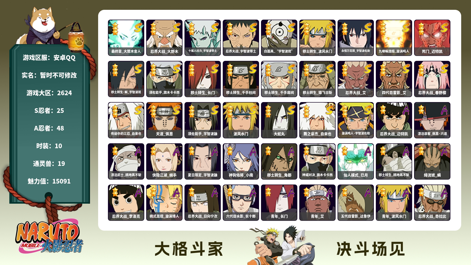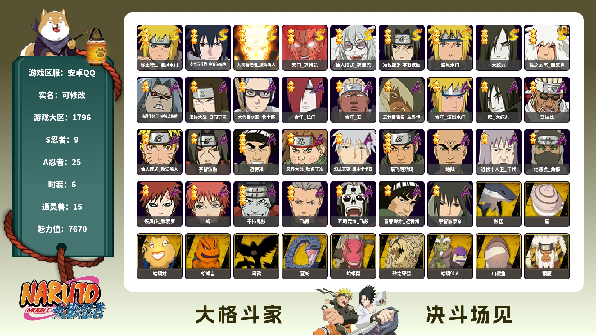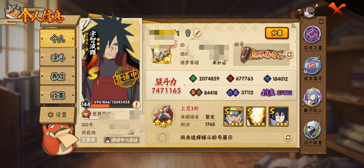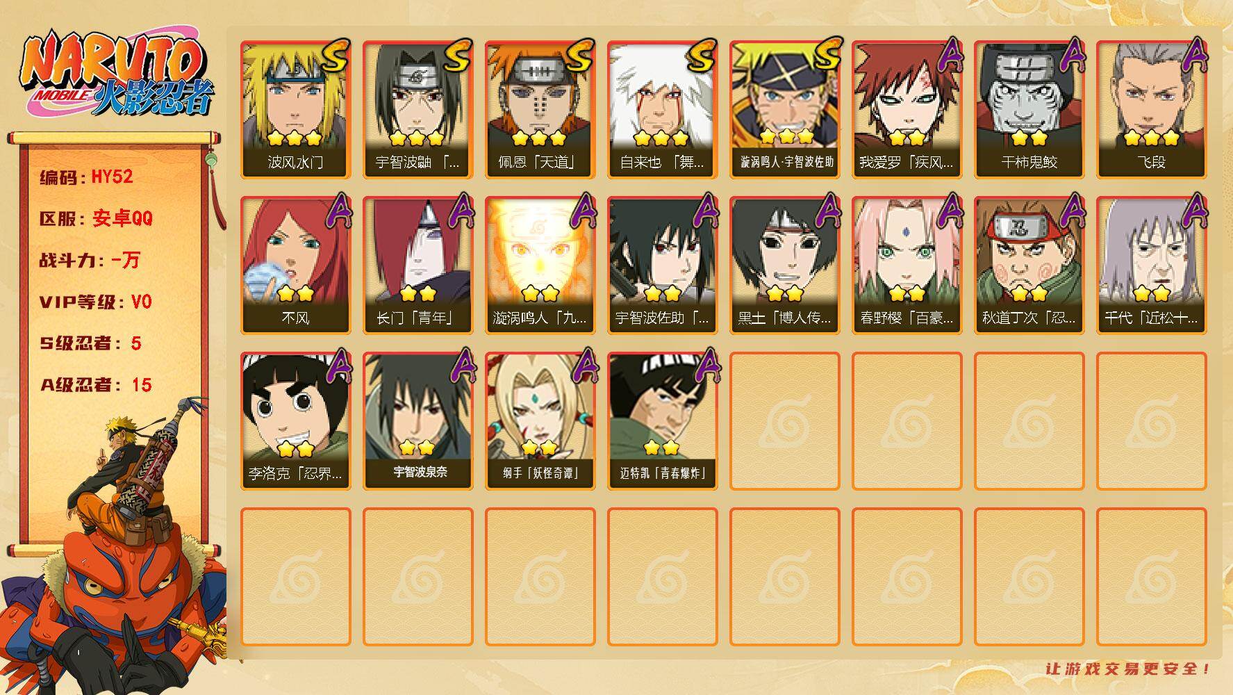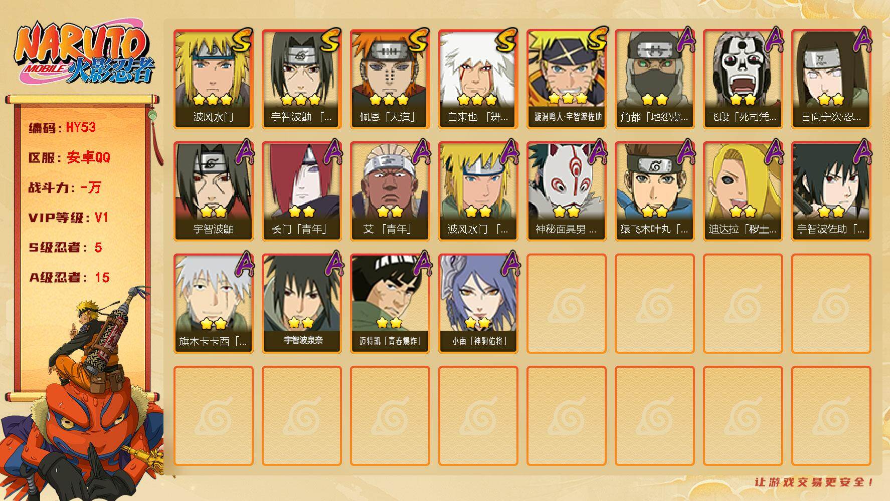 安卓qq/v11千万战力超哥号/198忍者3个/S忍者数:
