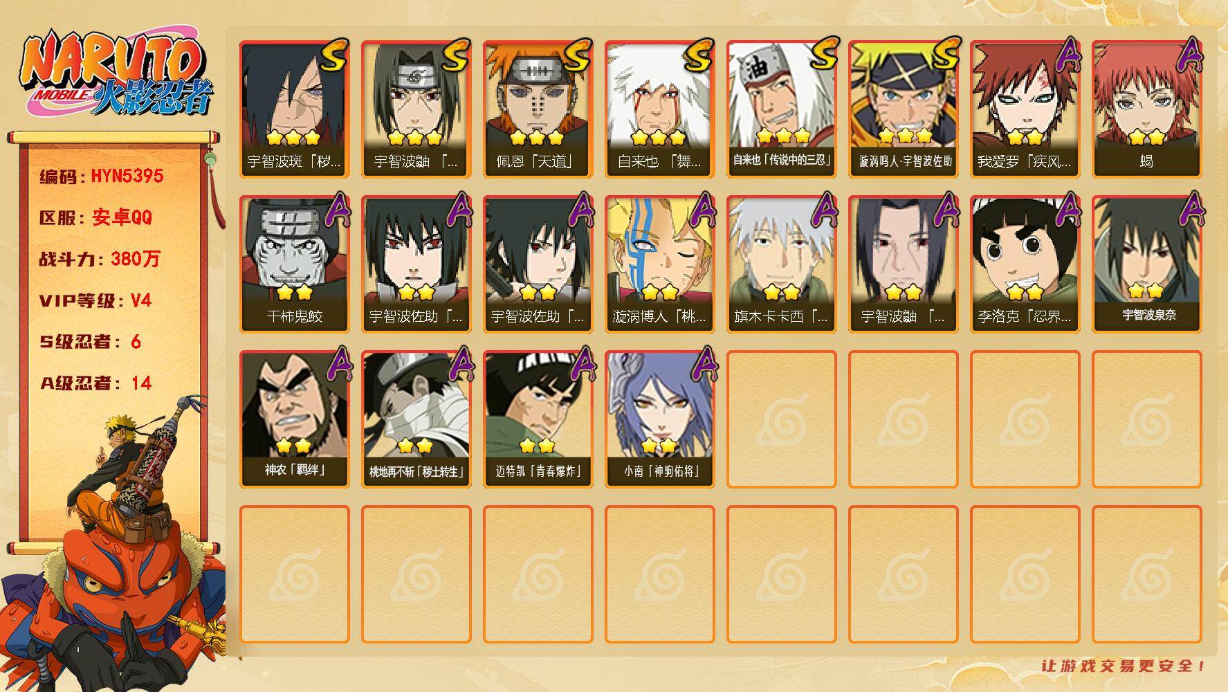 V4/战力380W/S忍6/A忍14/通灵兽12/舞之豪杰-自
