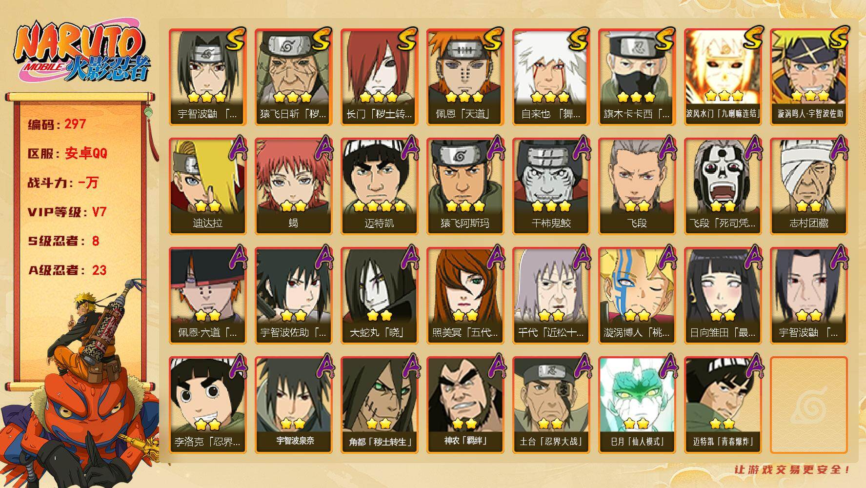 安卓qq-新手入坑账号-嘎嘎香-600多w战-S忍者数:8