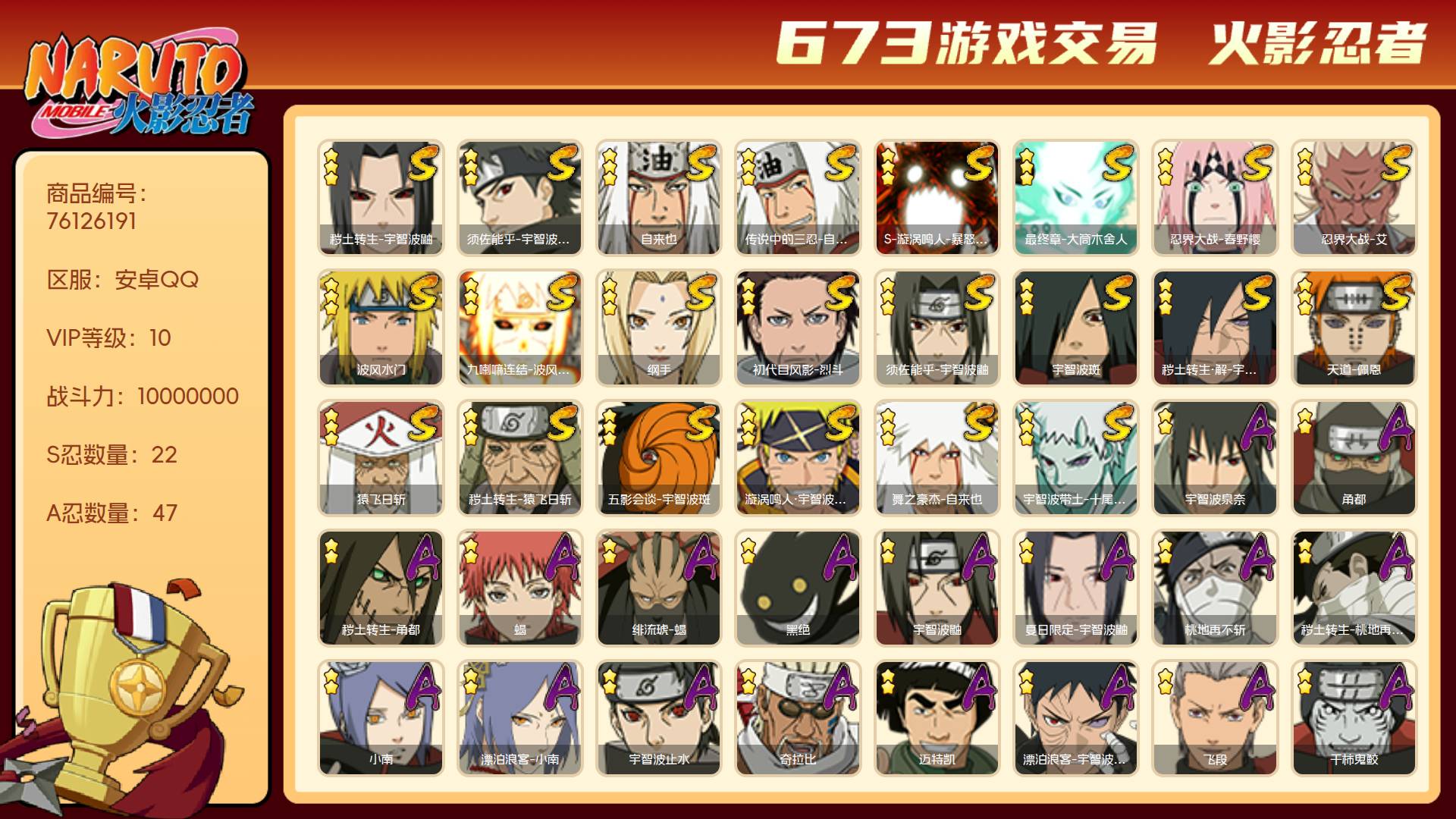 安卓QQ♦【18万金币号+百战水门+川自+百战佩恩+百战鼬+青水】♦