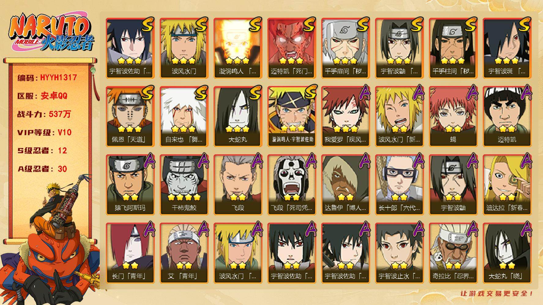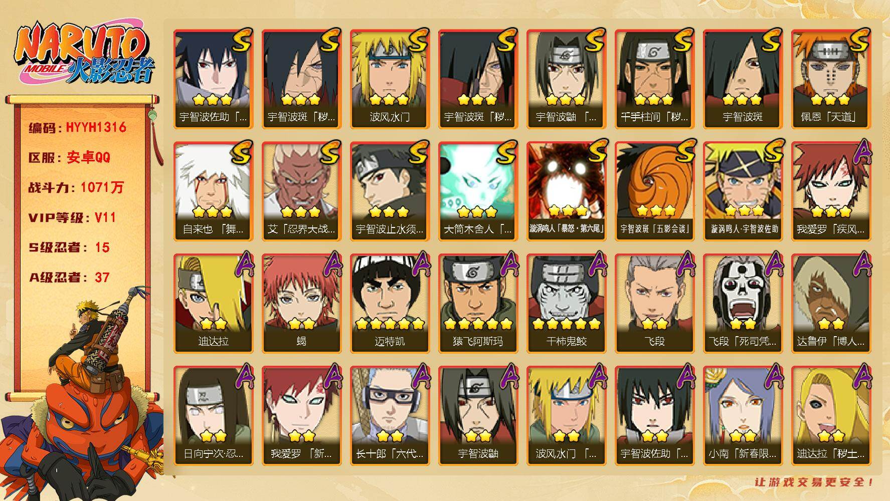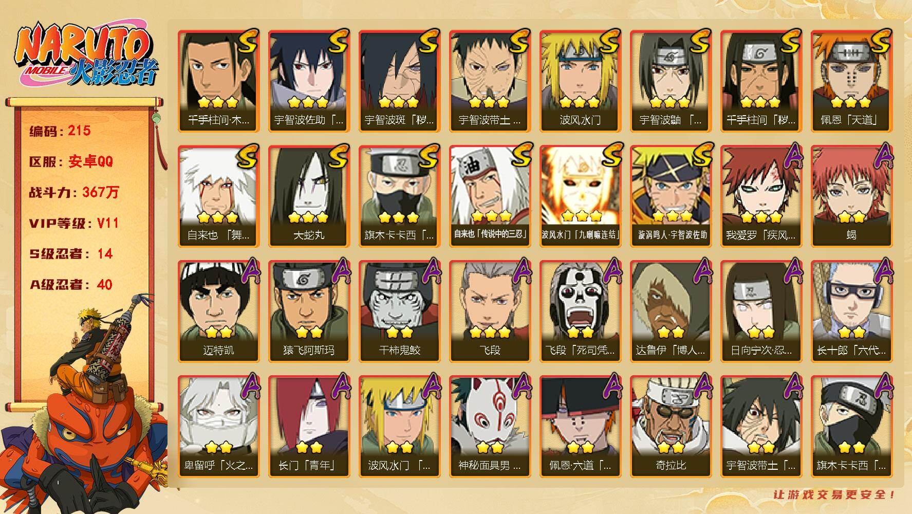安卓QQ♦20万金币号+百战水门+川自+百战佩恩+百战鼬+青水