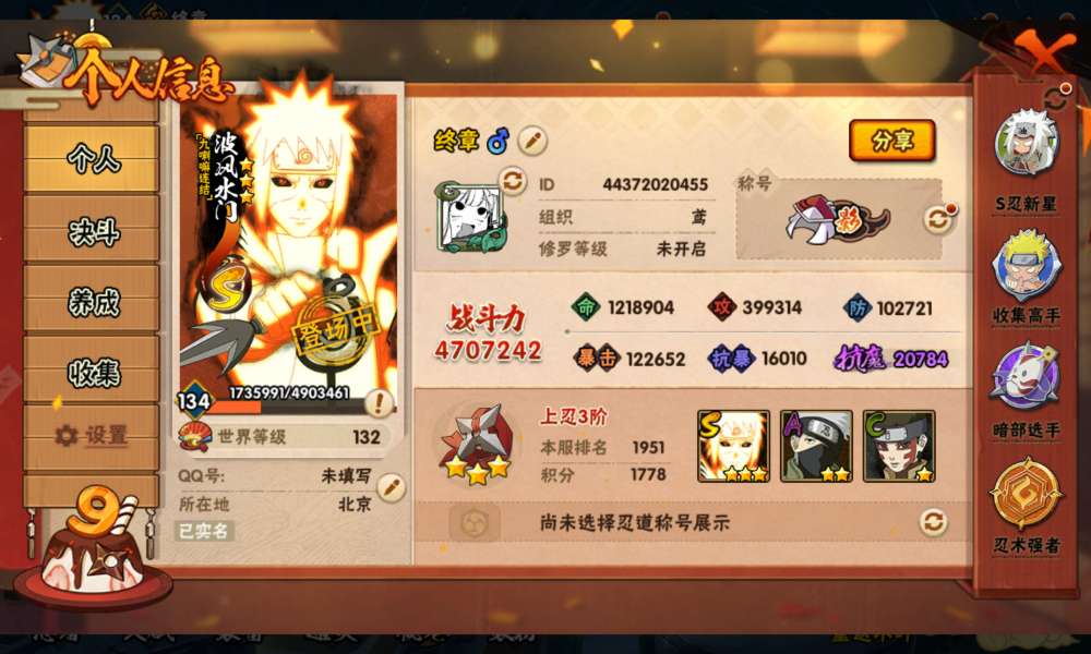 安卓QQ-极品小号-S忍者数:4- A忍者数:9【S级忍者