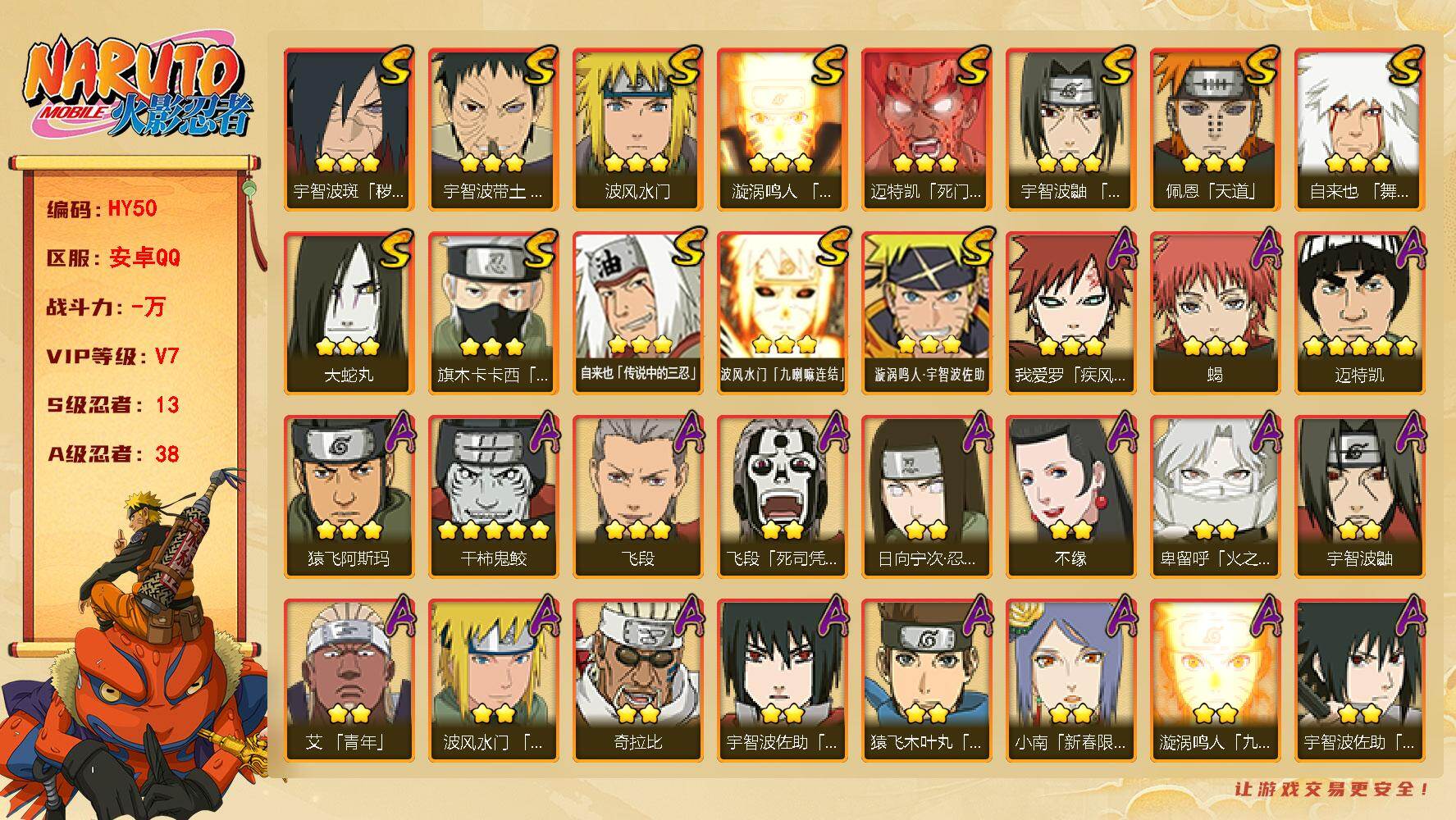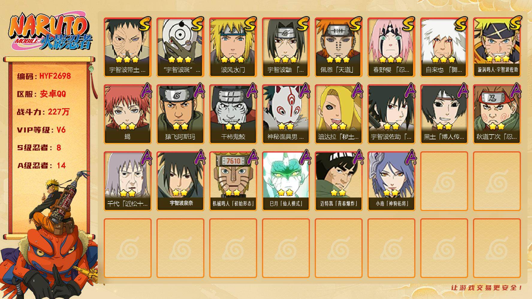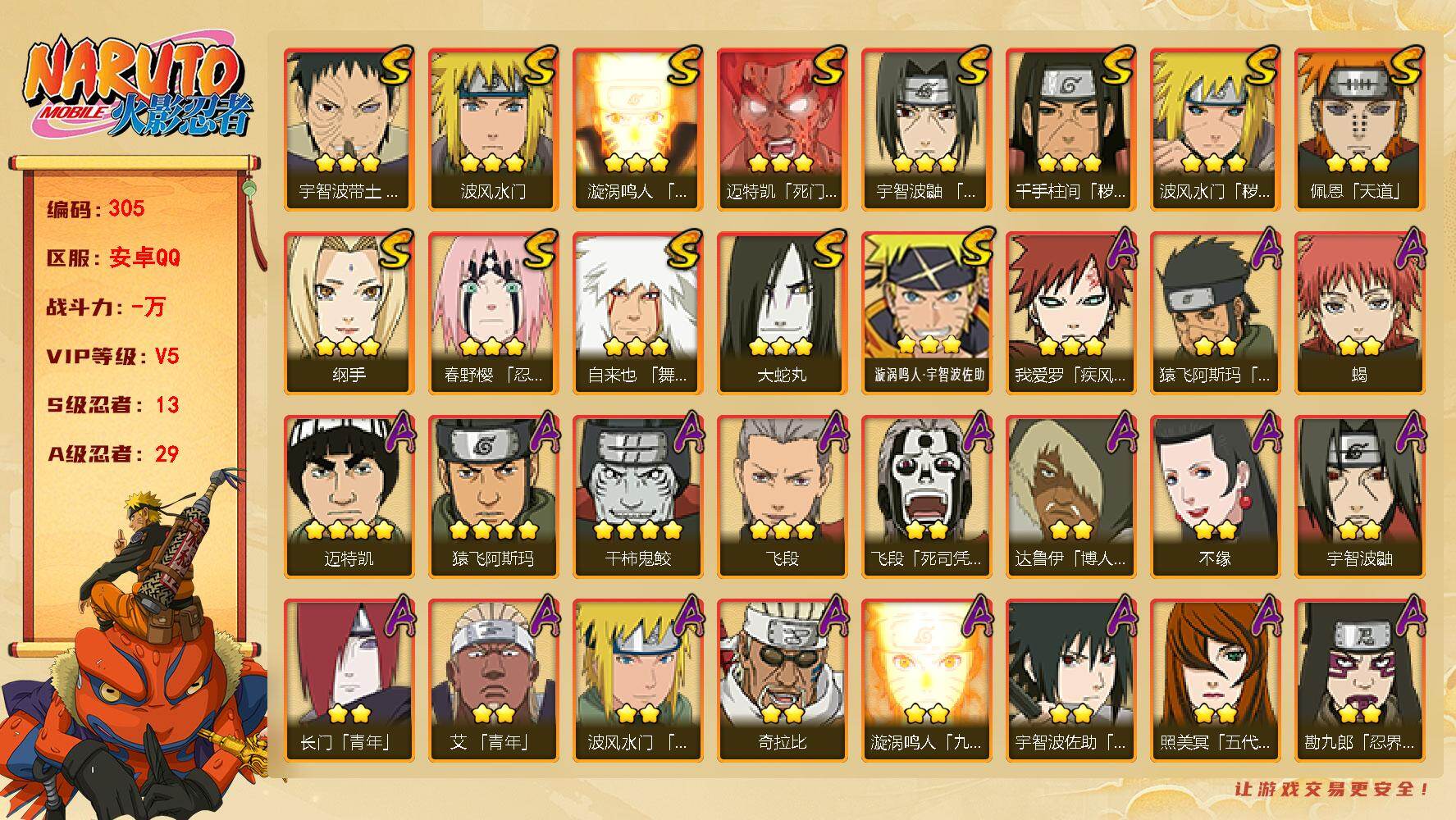 安卓QQ-可二次-850W战力-S忍者数:14- A忍者数