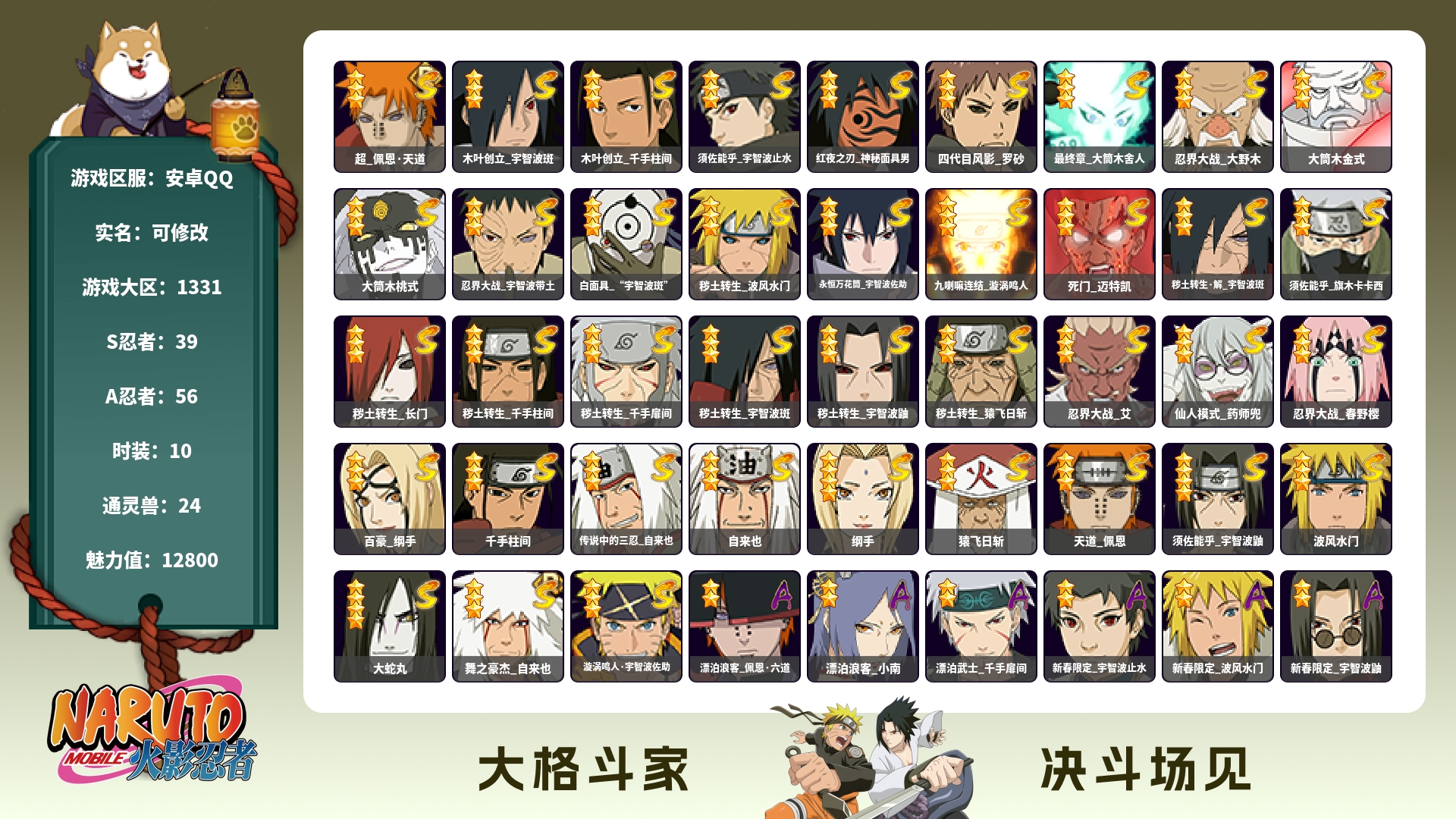 12S忍/29A忍/战力659W/V3/区服2459【S忍者】宇智波佐助「漩涡鸣人」,宇智波佐助「永恒万花筒」,春野樱「忍界大战」,漩涡鸣人「九喇嘛连结」