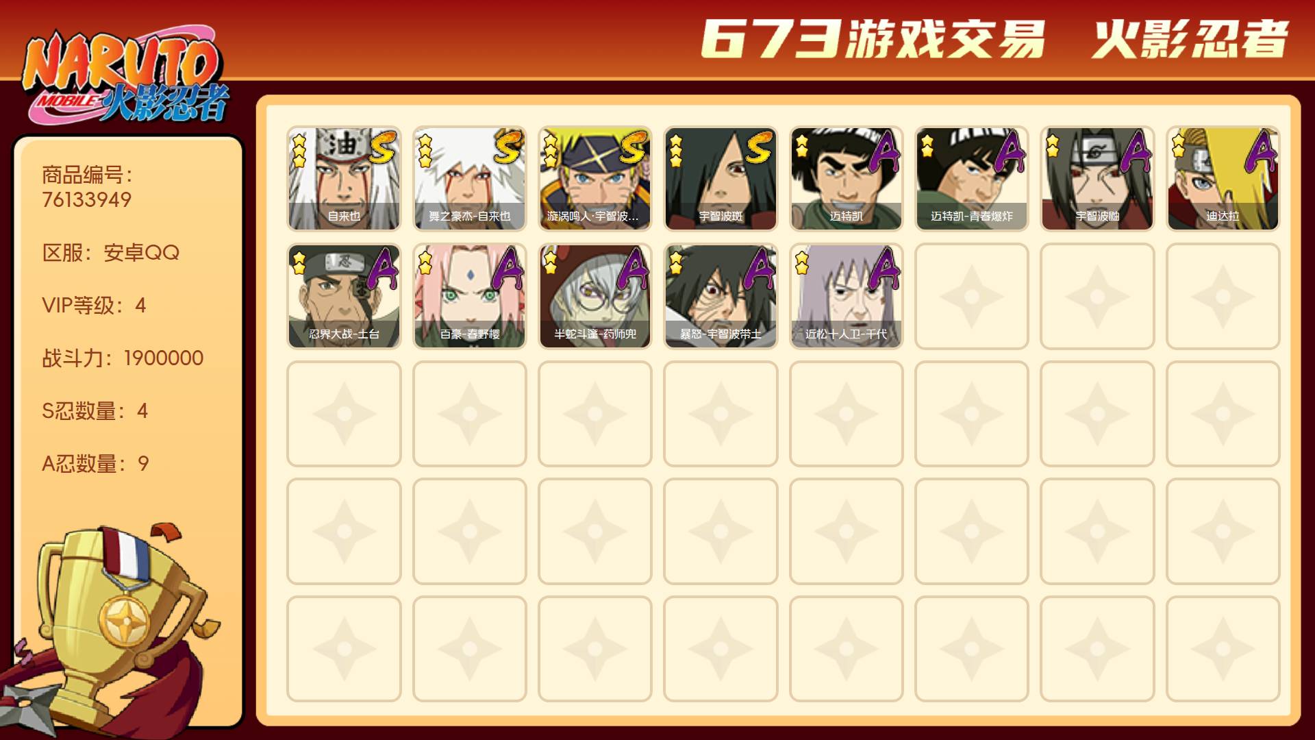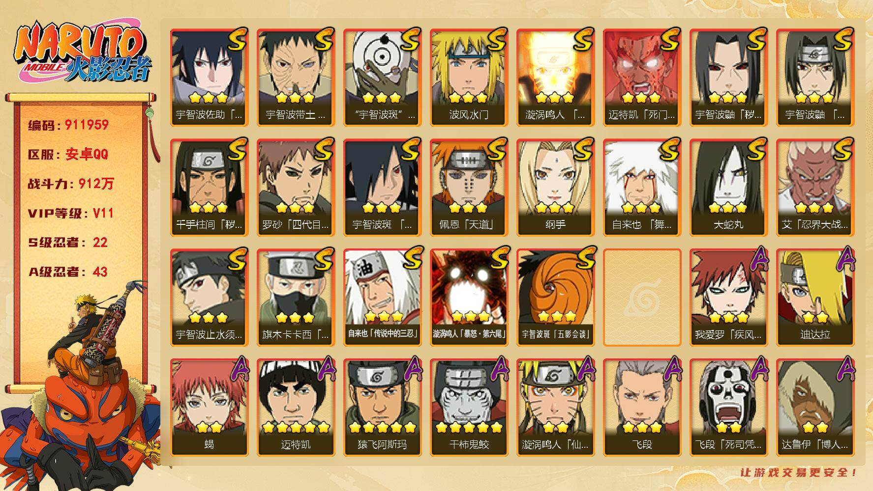 安卓qqv3/新手小号首选账号/S忍者数:8- A忍者数: