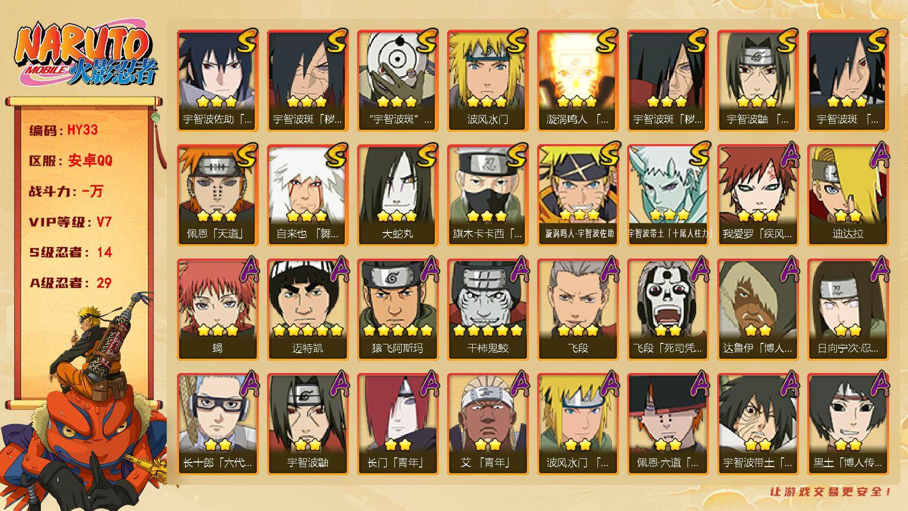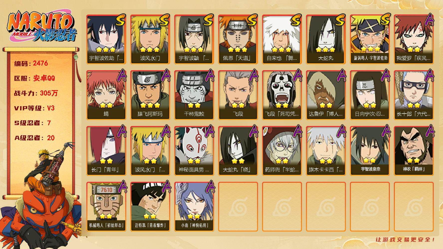 v3 7S 20A 305万战力 忍战樱63片 zp3513【S级忍者】:宇