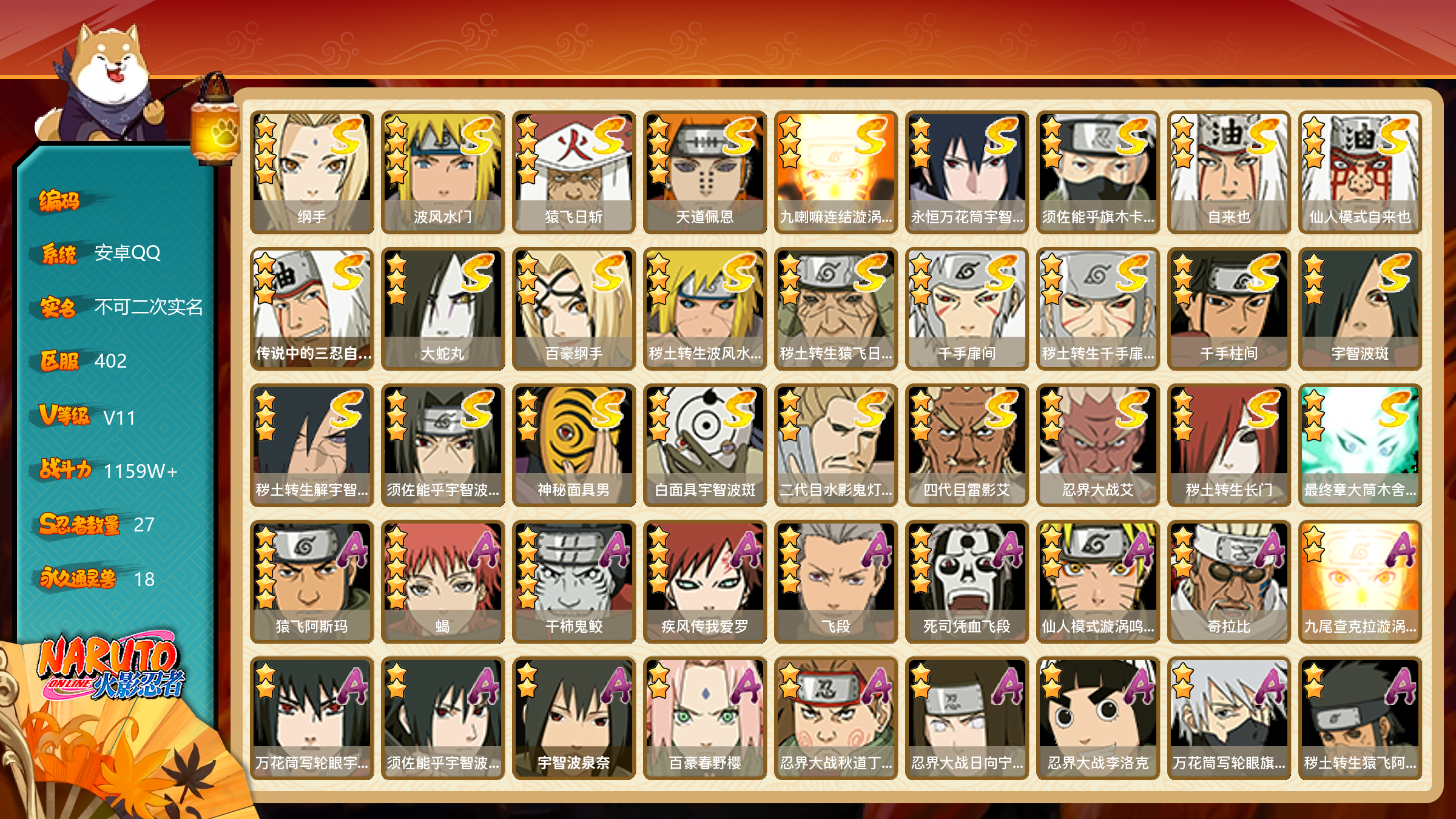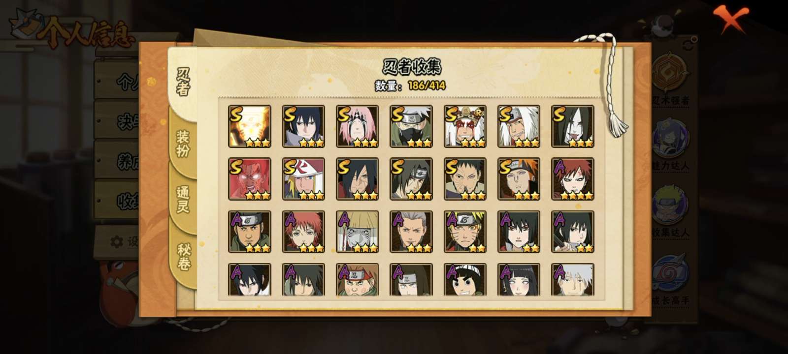 413全忍者3w金币可以忍全网最全火影号之前买过全赔的不用买全赔 全通灵全奥义全全服第二