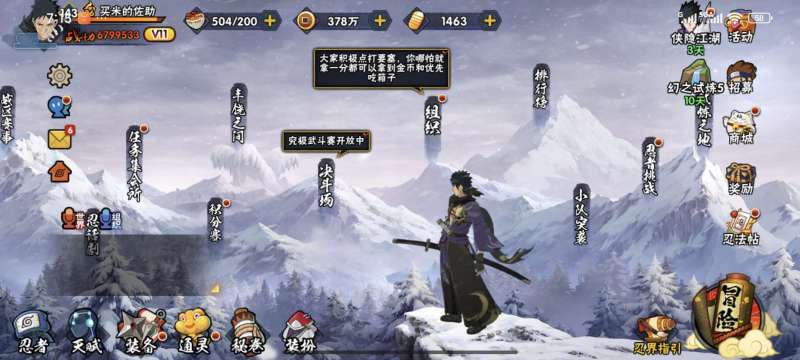 金身水门快出。198忍者很多。有漂泊带土皮肤。侠隐佐助主场景。号里还有2300点券