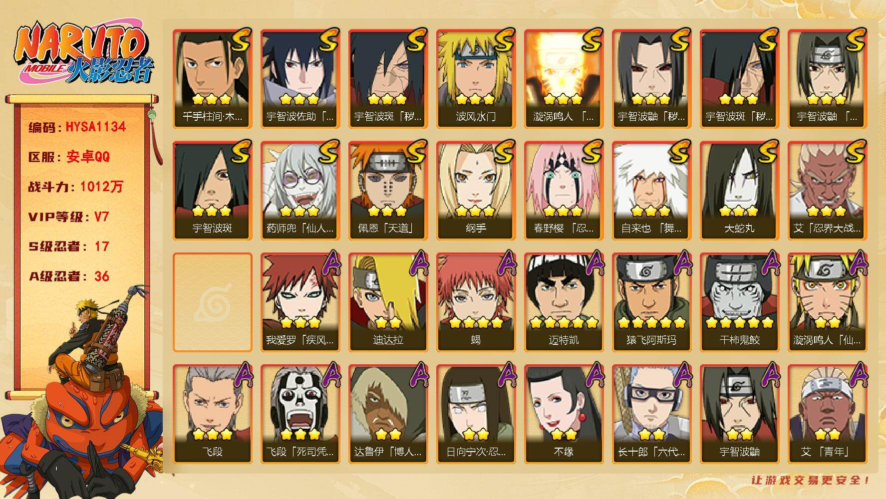 V7/战力1012W/S忍17/A忍36/通灵兽18/