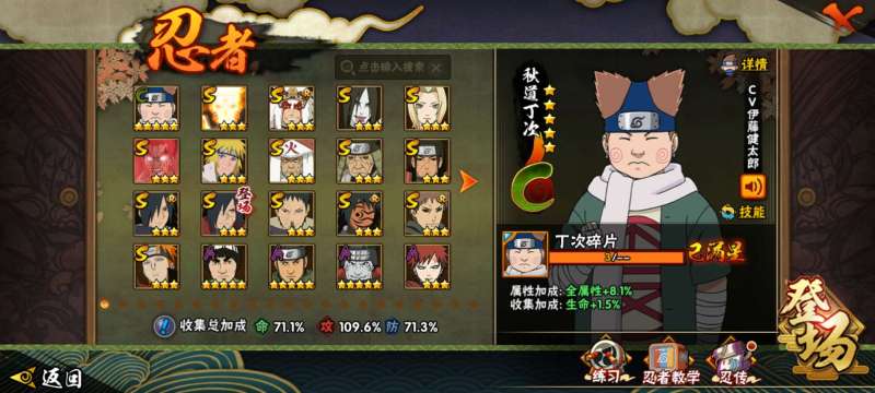 V14 2370万战力 49S级忍者数-72A级忍者数 有熊猫 有648奥义图