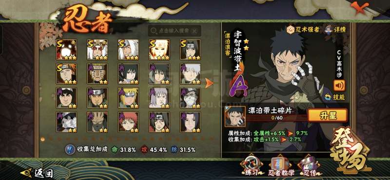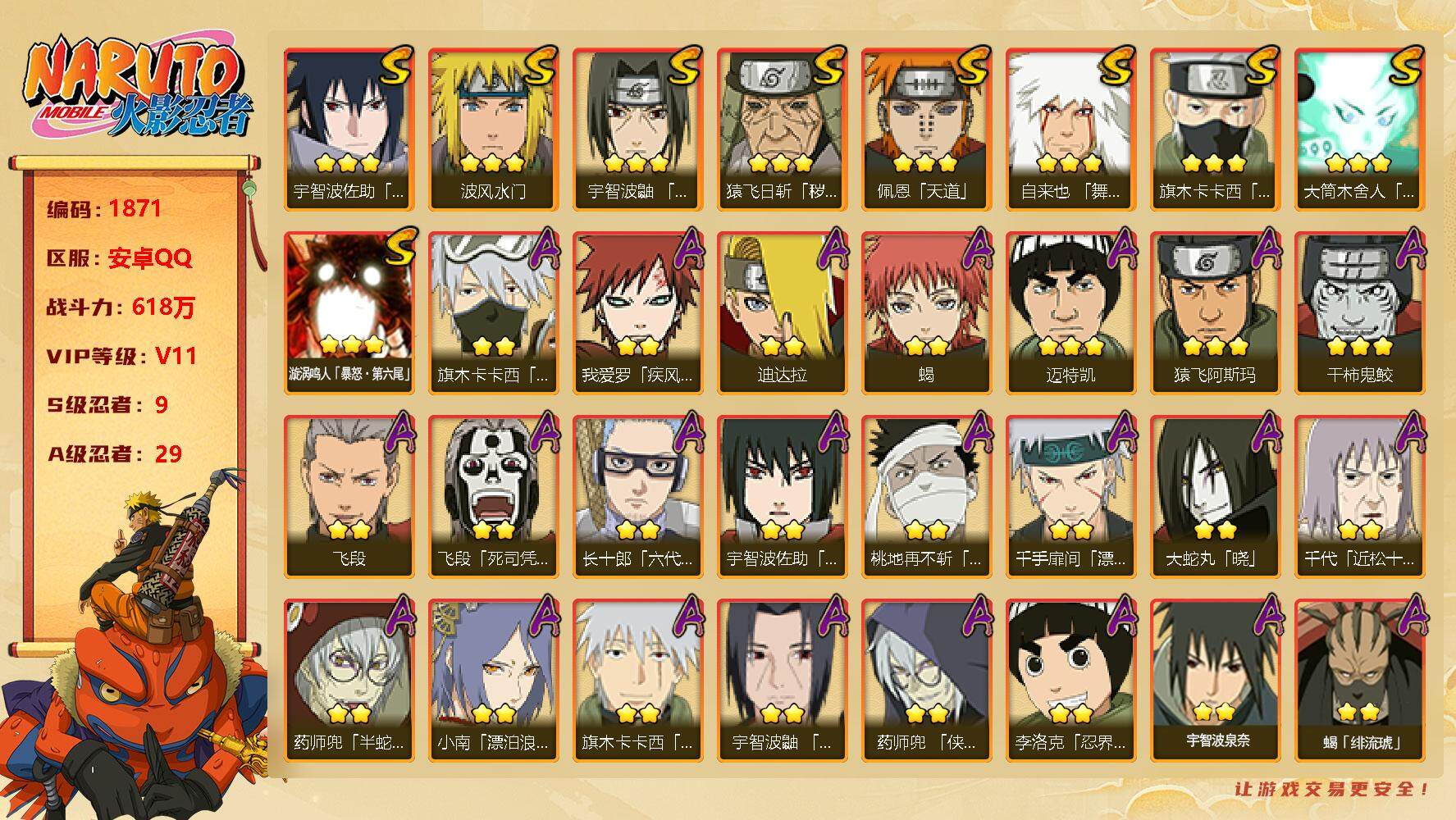 火影忍者【安卓QQ】v11 9S 29A 618w战力 热门A忍:漂泊忍者 传说自来也53片 金水