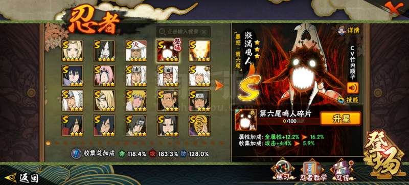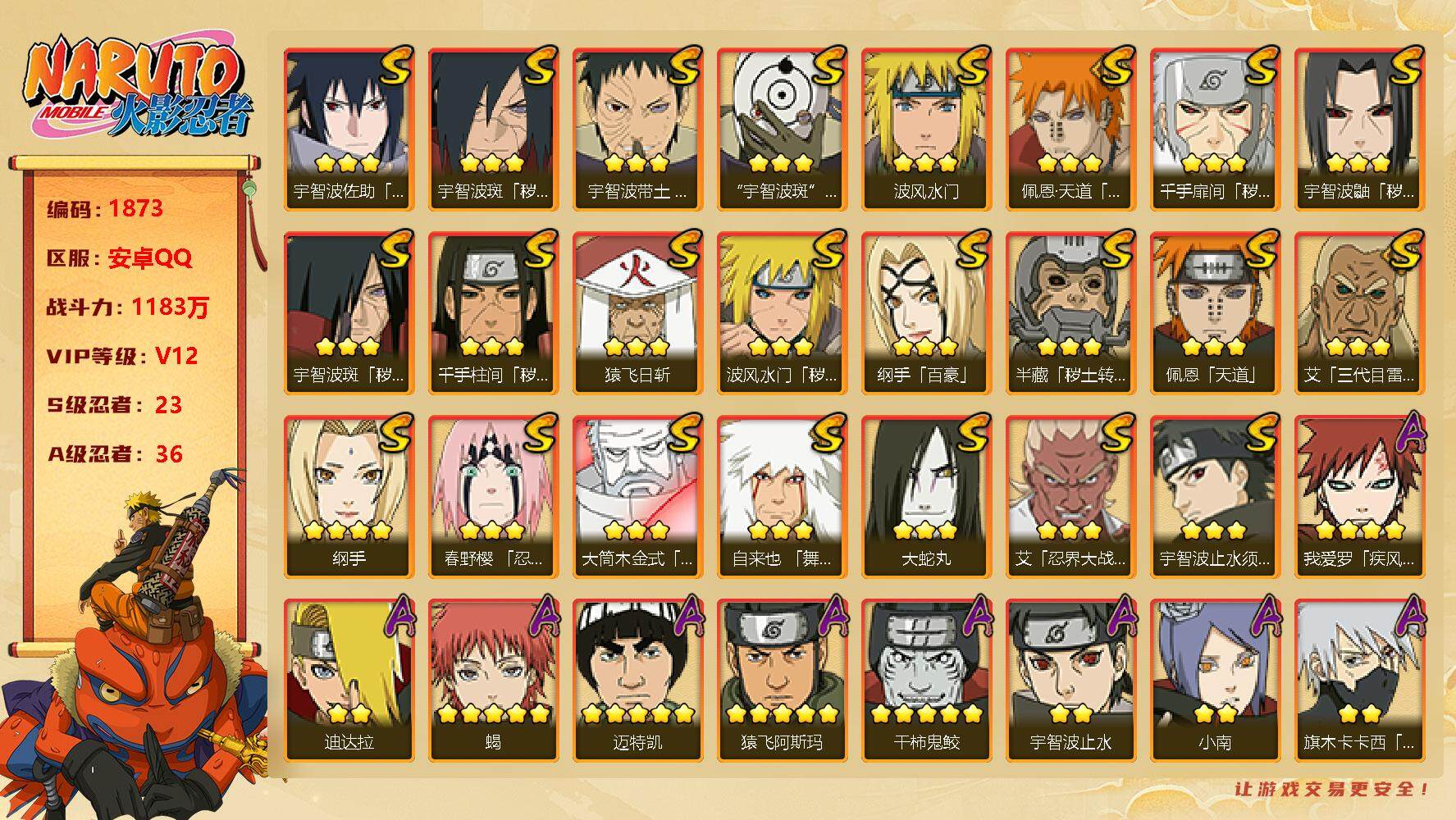 火影忍者【安卓QQ】V12 1183万战力 23S级忍者数-36A级忍者数 秽土日斩63片 自来也