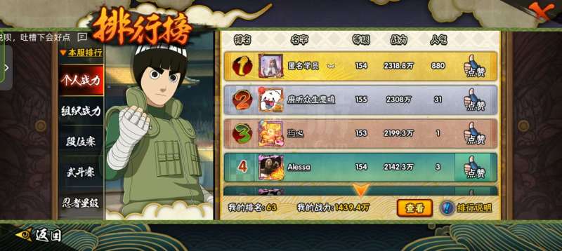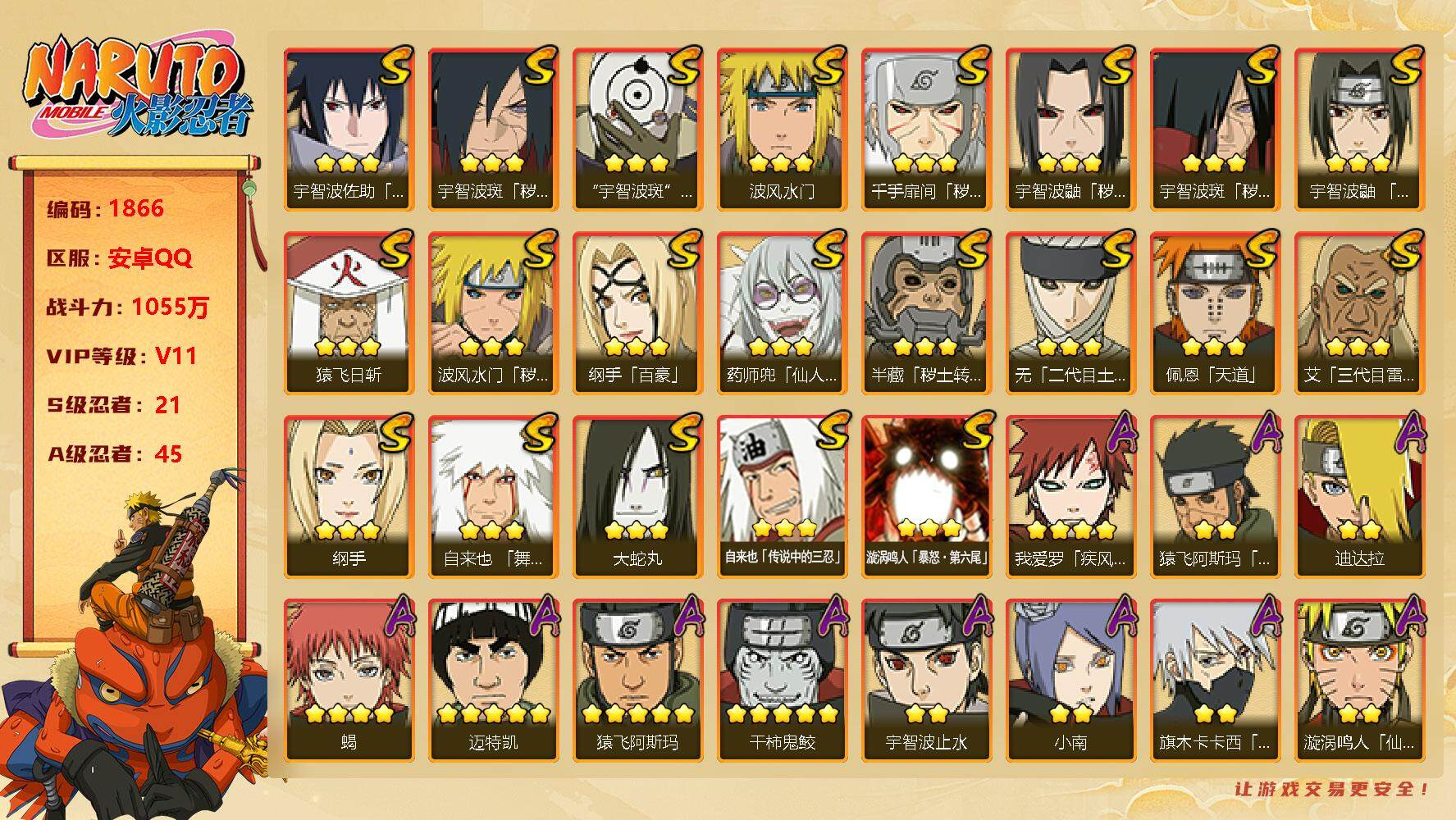 火影忍者【安卓QQ】V11 1055万战力 21S级忍者数-45A级忍者数 有熊猫 九喇嘛水门51