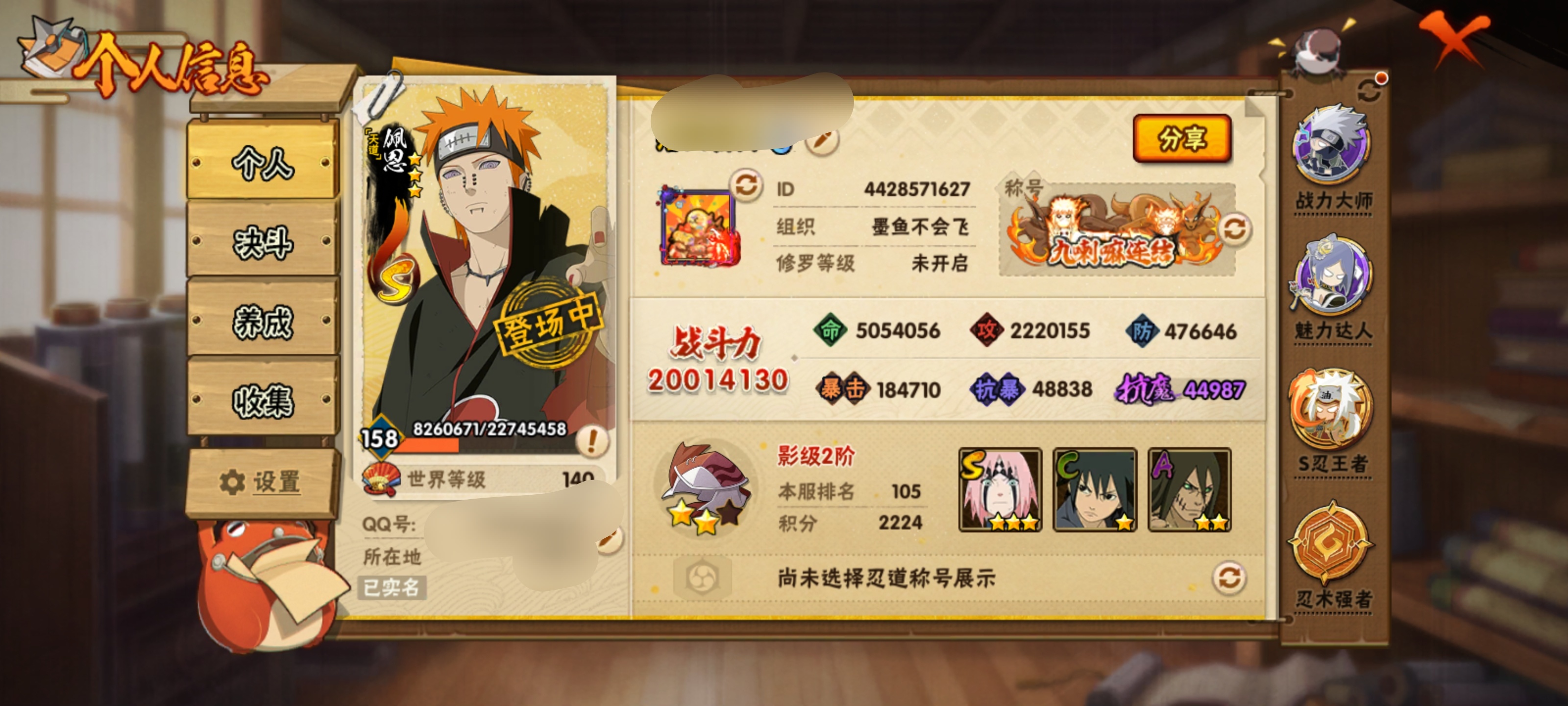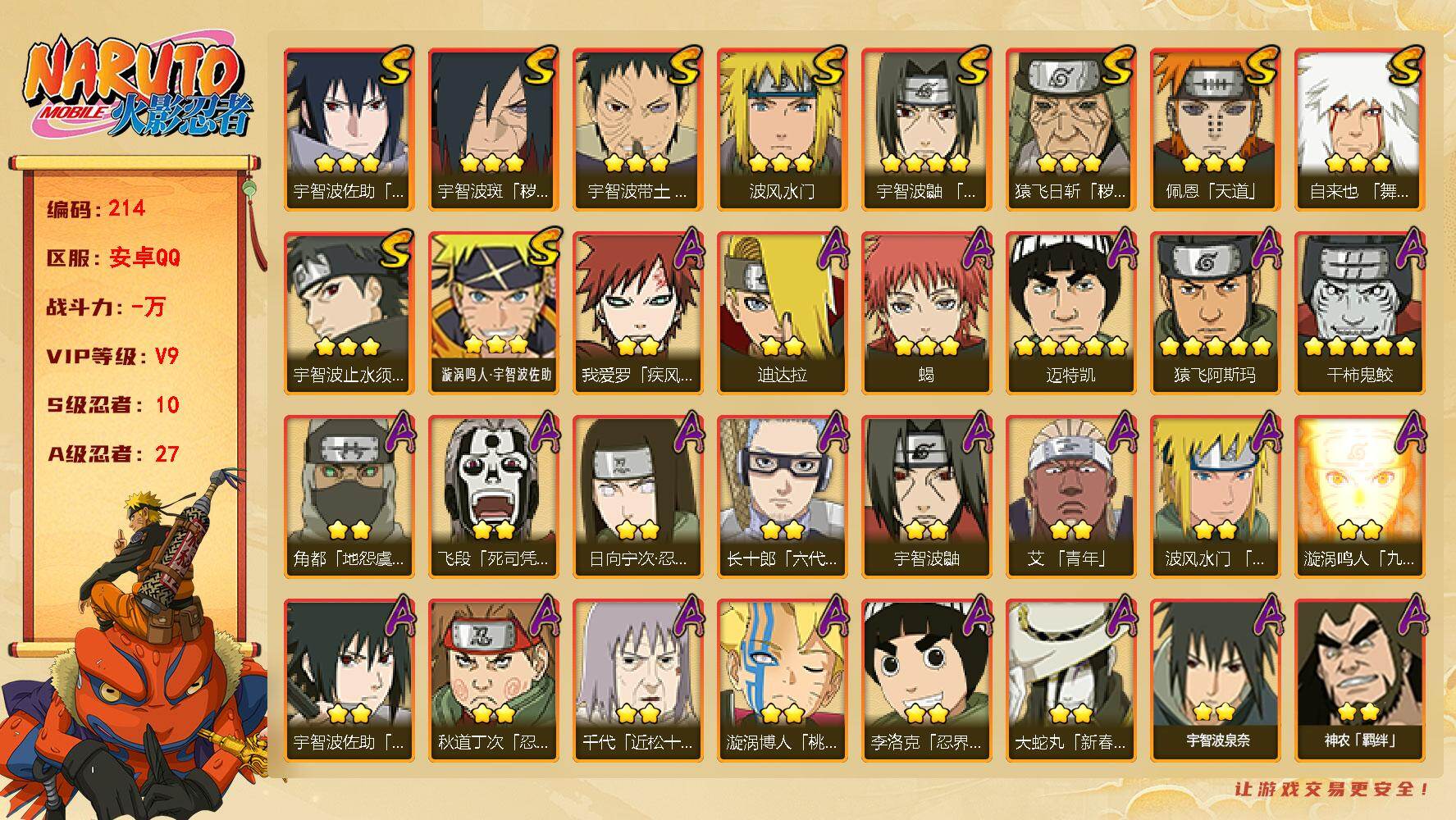 安卓qq/质量v14/两千万战力/198忍者22个/298