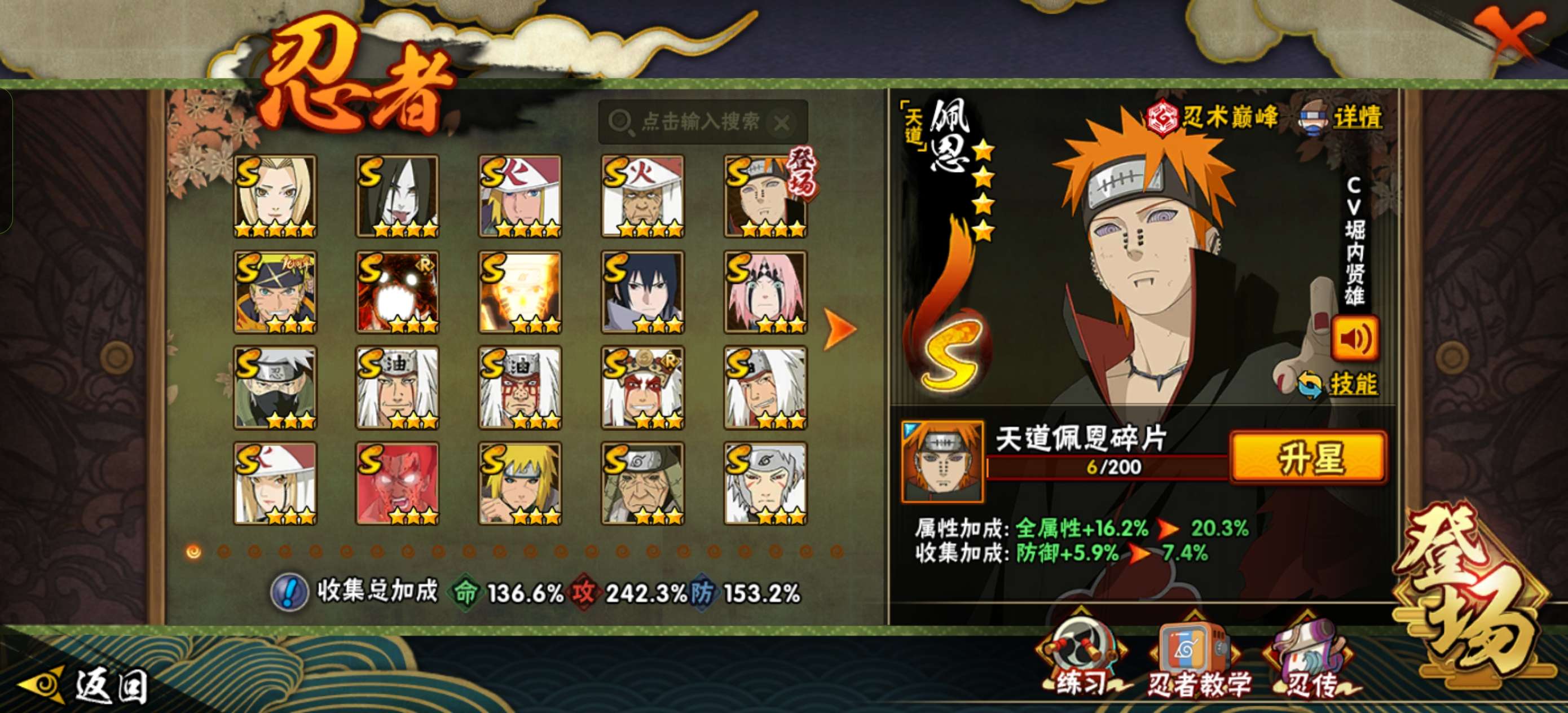 V15,33s,51a,2000万战力,34000金币,漂泊系列全,五星白面具,忍战樱3代风影快出了