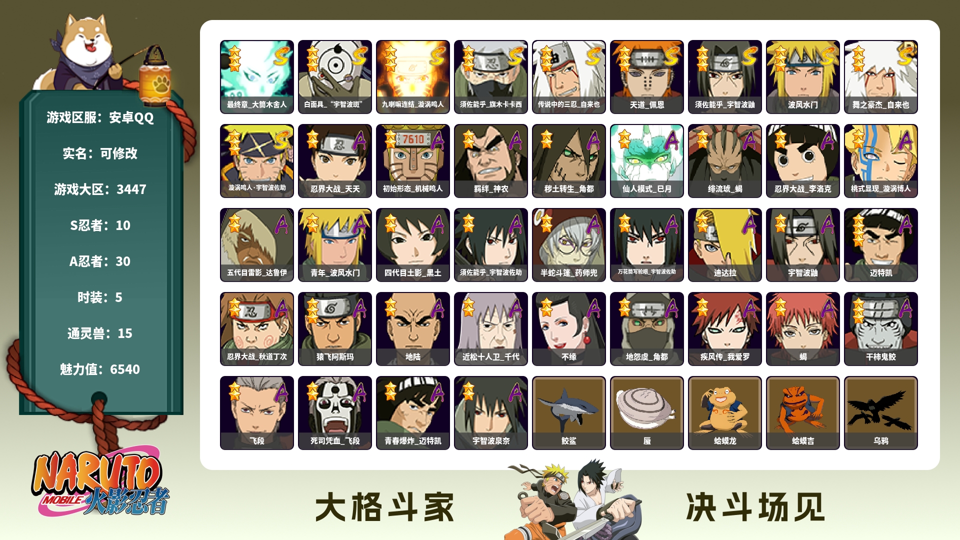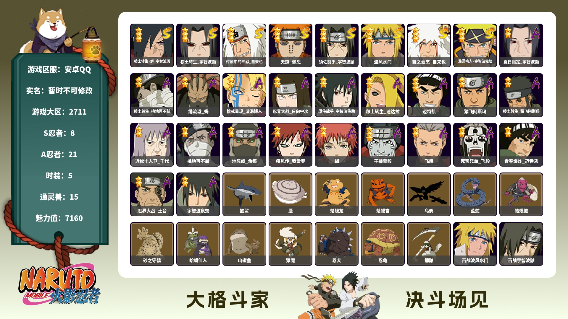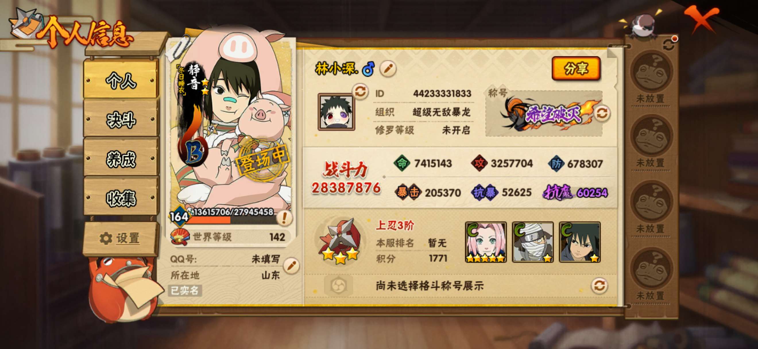 649w战力三自解斑死鼬8S+夏日鼬21A战力649忍者总数