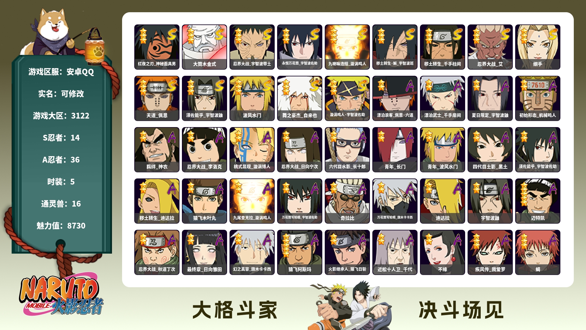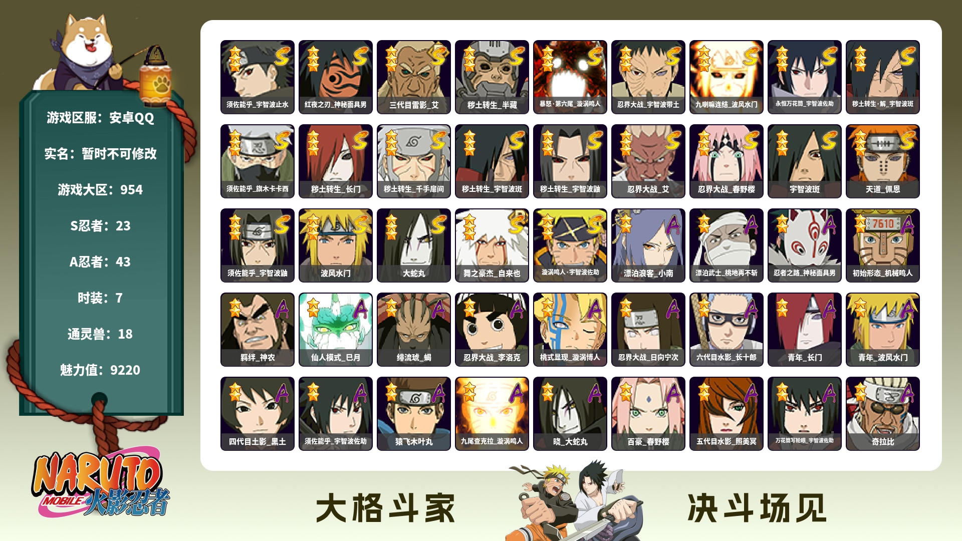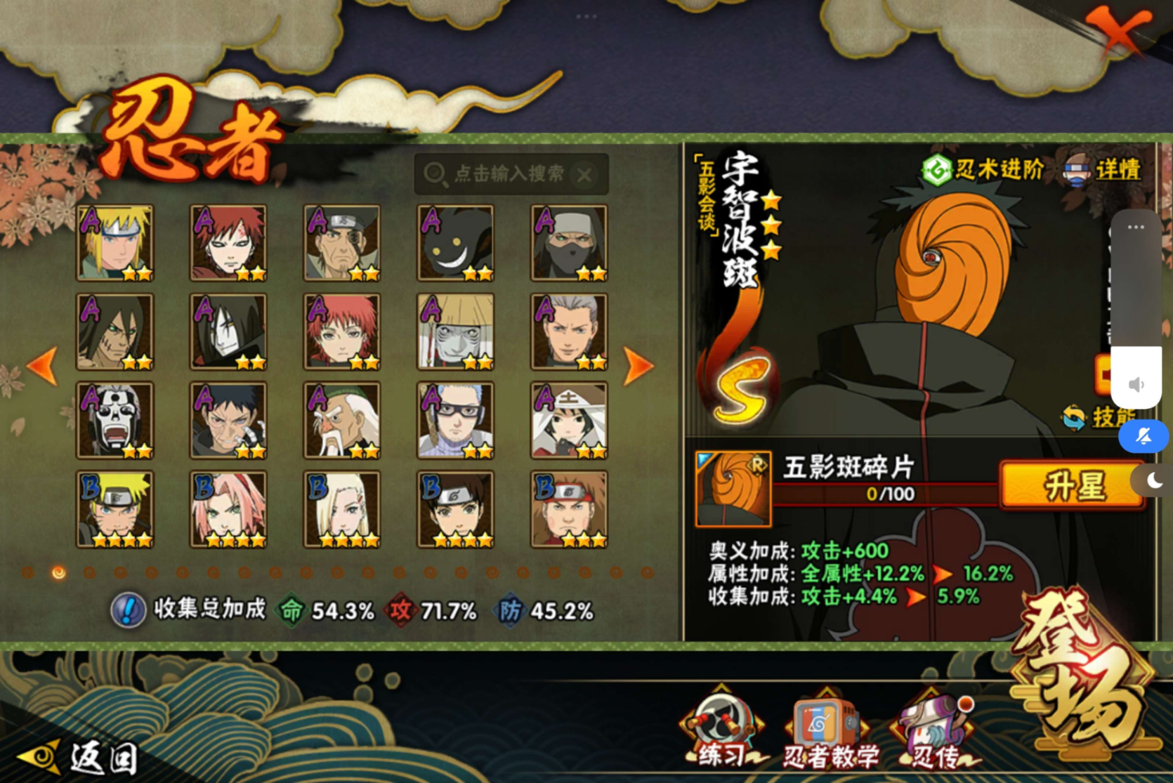 320w战力解斑传自4s+鹰佐共11A战力320忍者总数70