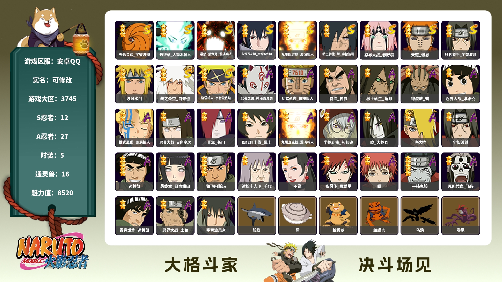 777w战力绿牛破面五影斑13S+妖怪纲手26A+天道超碎片