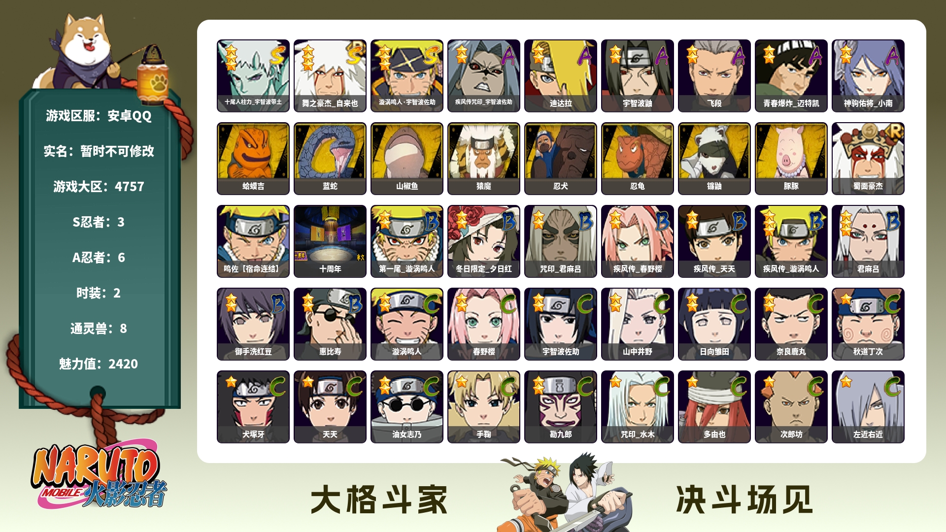 安卓qq/v8/S忍者数:8- A忍者数:25【S级忍者】