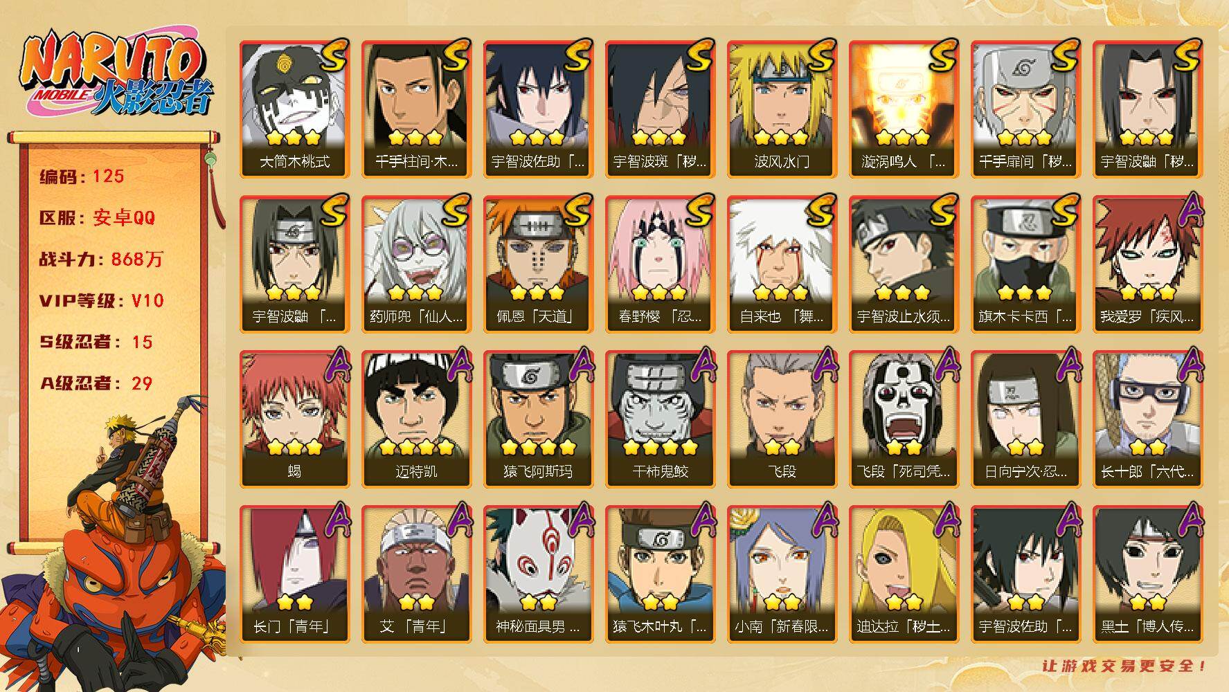 安卓QQ-可二次-V10成品大号免肝免氪-S忍者数:22-