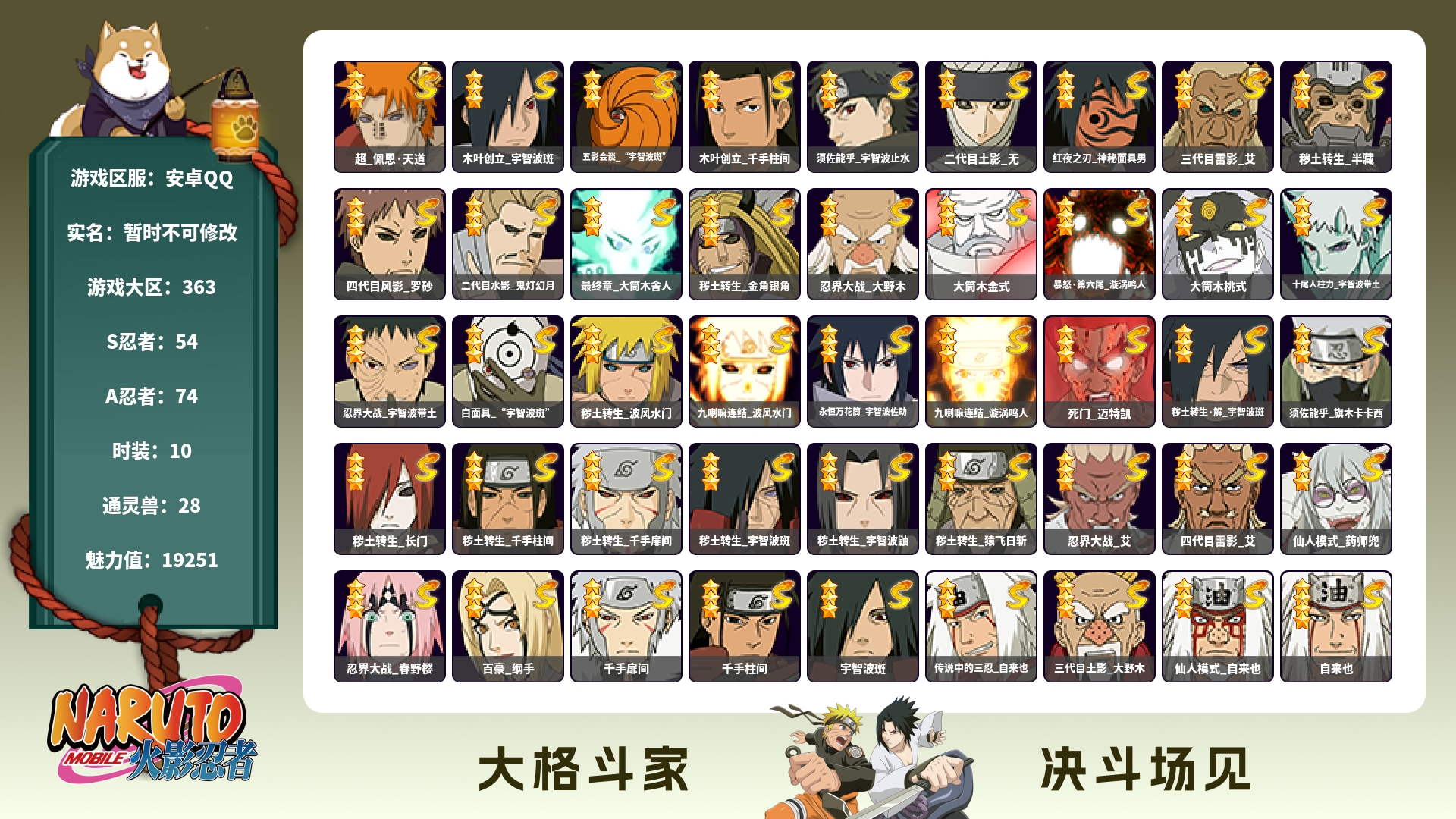 (可转苹果)399w战力紫狗死扉8s+咒印佐助19a战力39