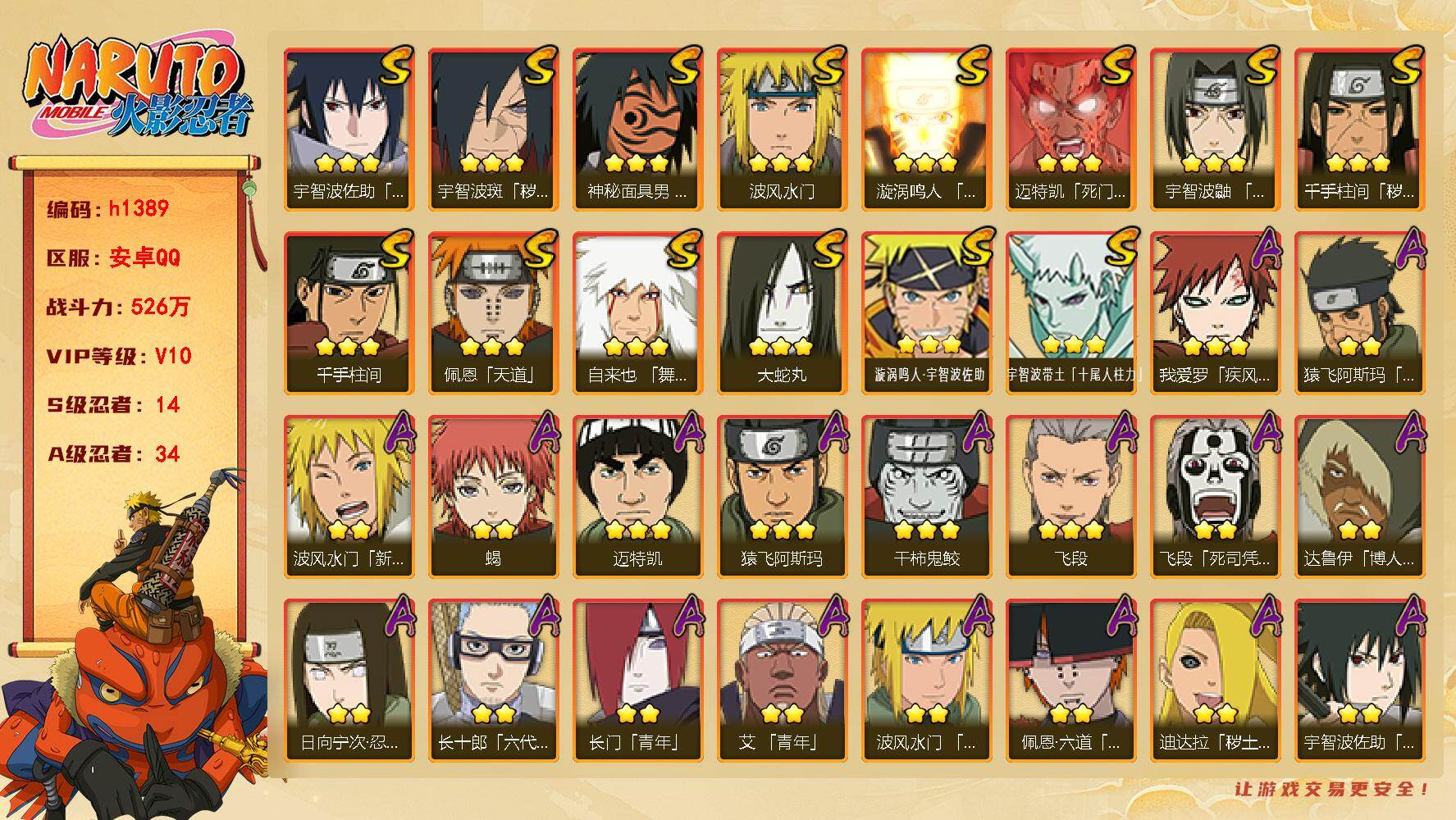 29S级忍者数-55A级忍者数【S级忍者】:长门「秽土转生」(3星)