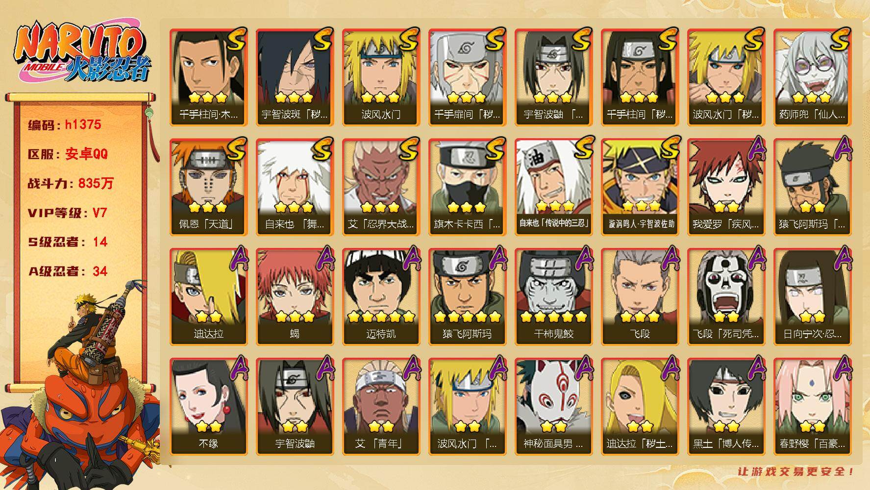 14S级忍者数-34A级忍者数【S级忍者】:波风水门「秽土转生」(3星)