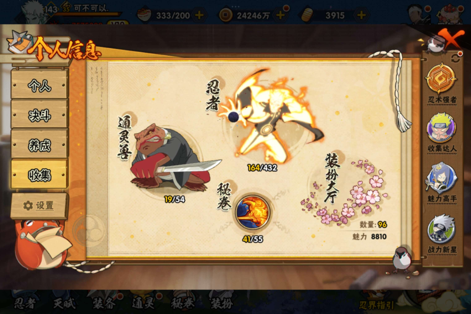角色等级139 金币100000 战斗力540 S忍11 A忍26 5星S忍者10 6 段位上忍