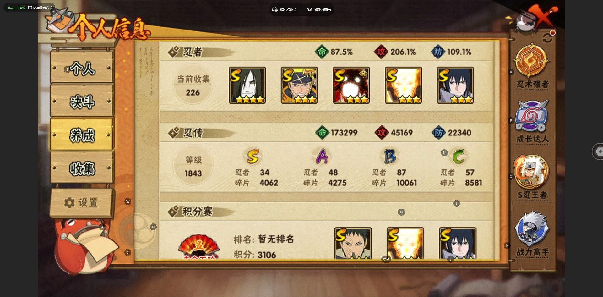 V11 31S忍 42A忍 24通灵 1806W战力