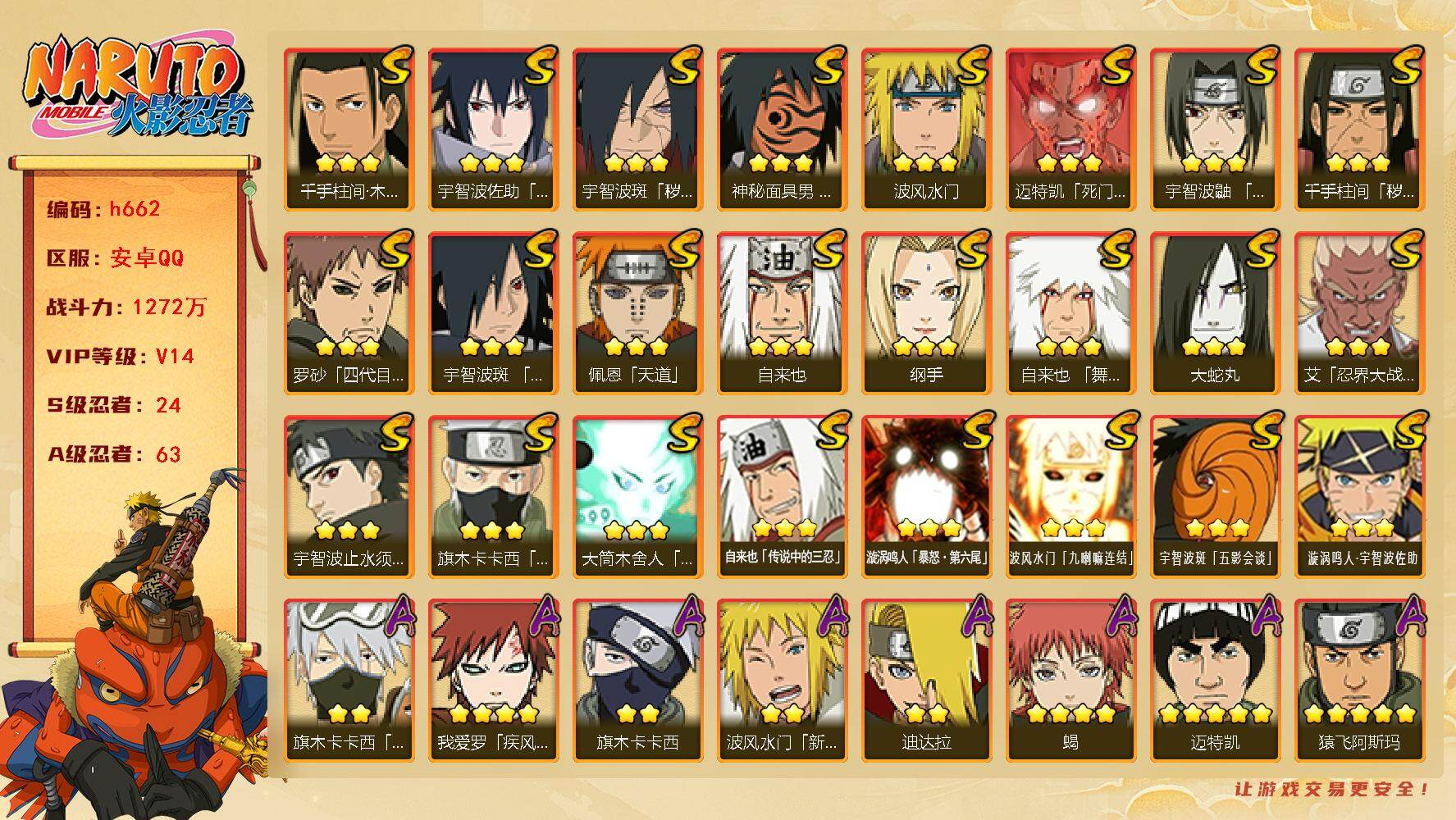 【编号16086可秒换绑】【店长推荐精品号】【商品标题】:26S级忍者数-42A