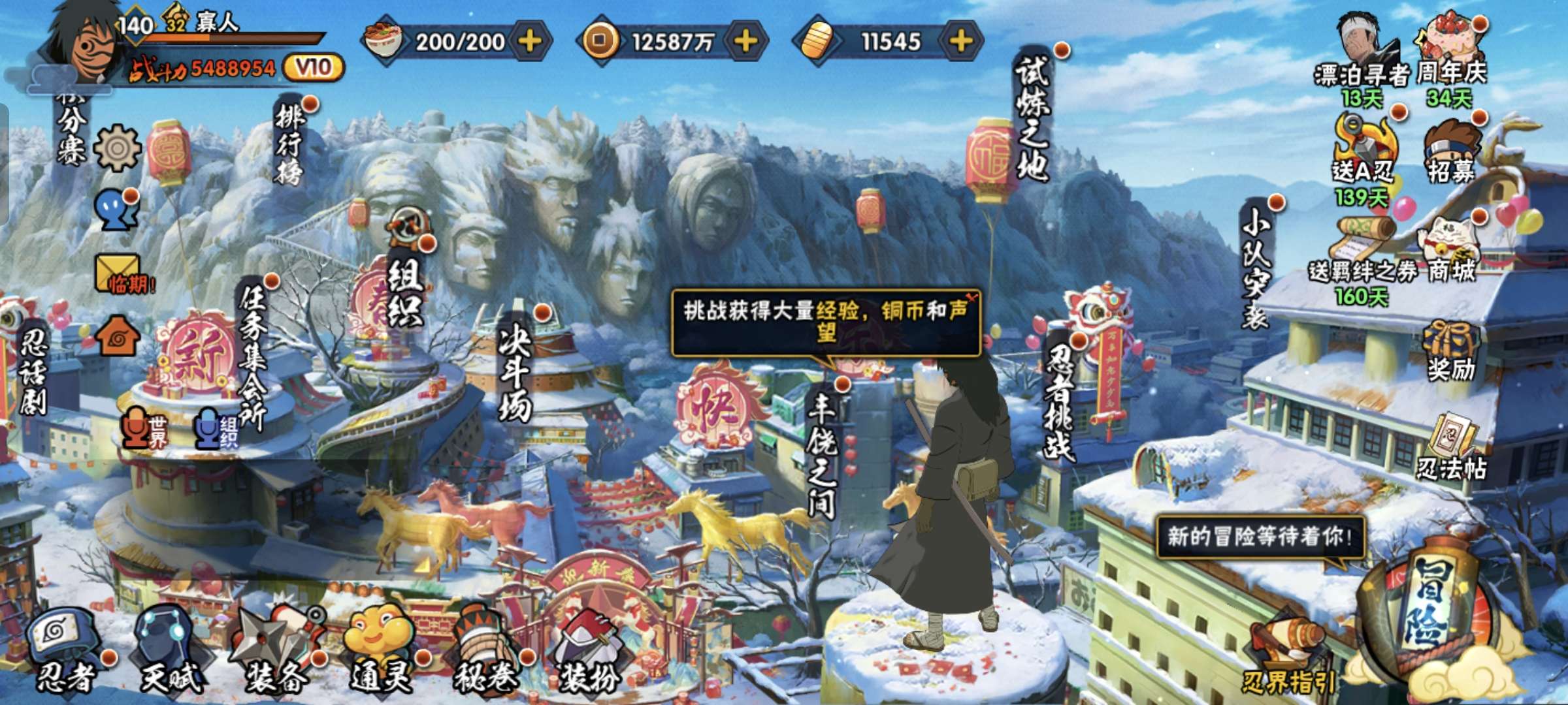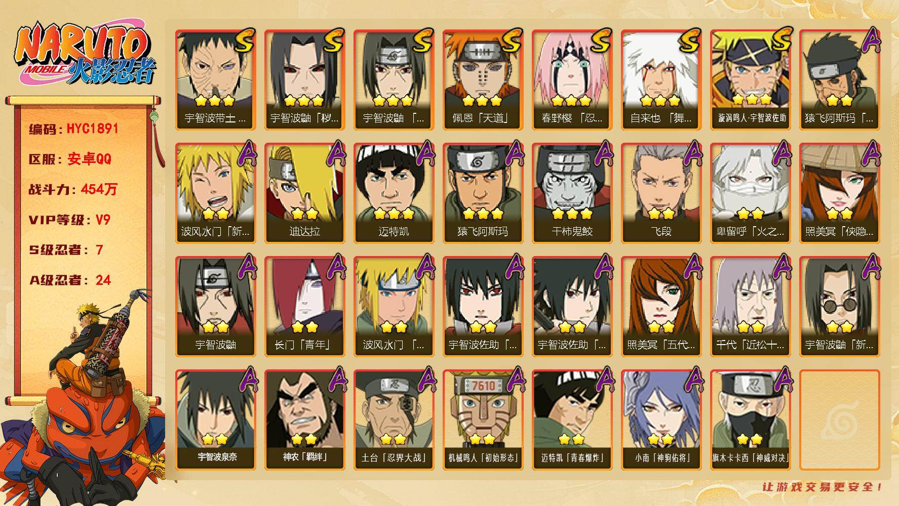 VIP等级V9/战力454W/S忍数量7/A忍数量24/新春限