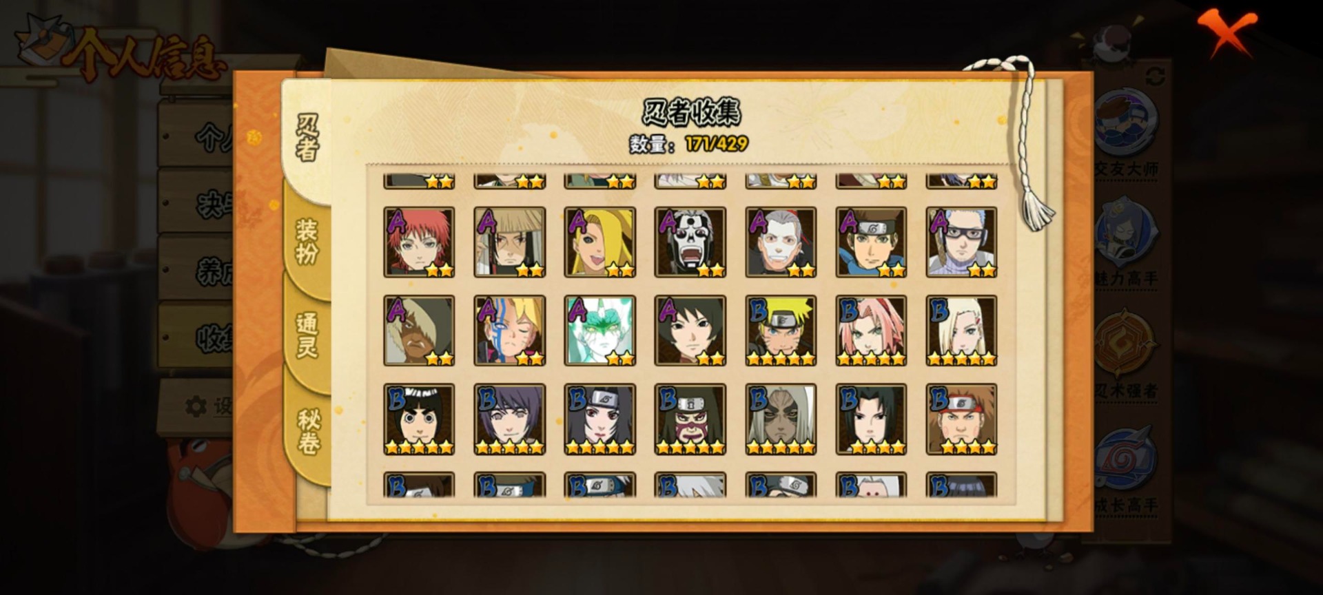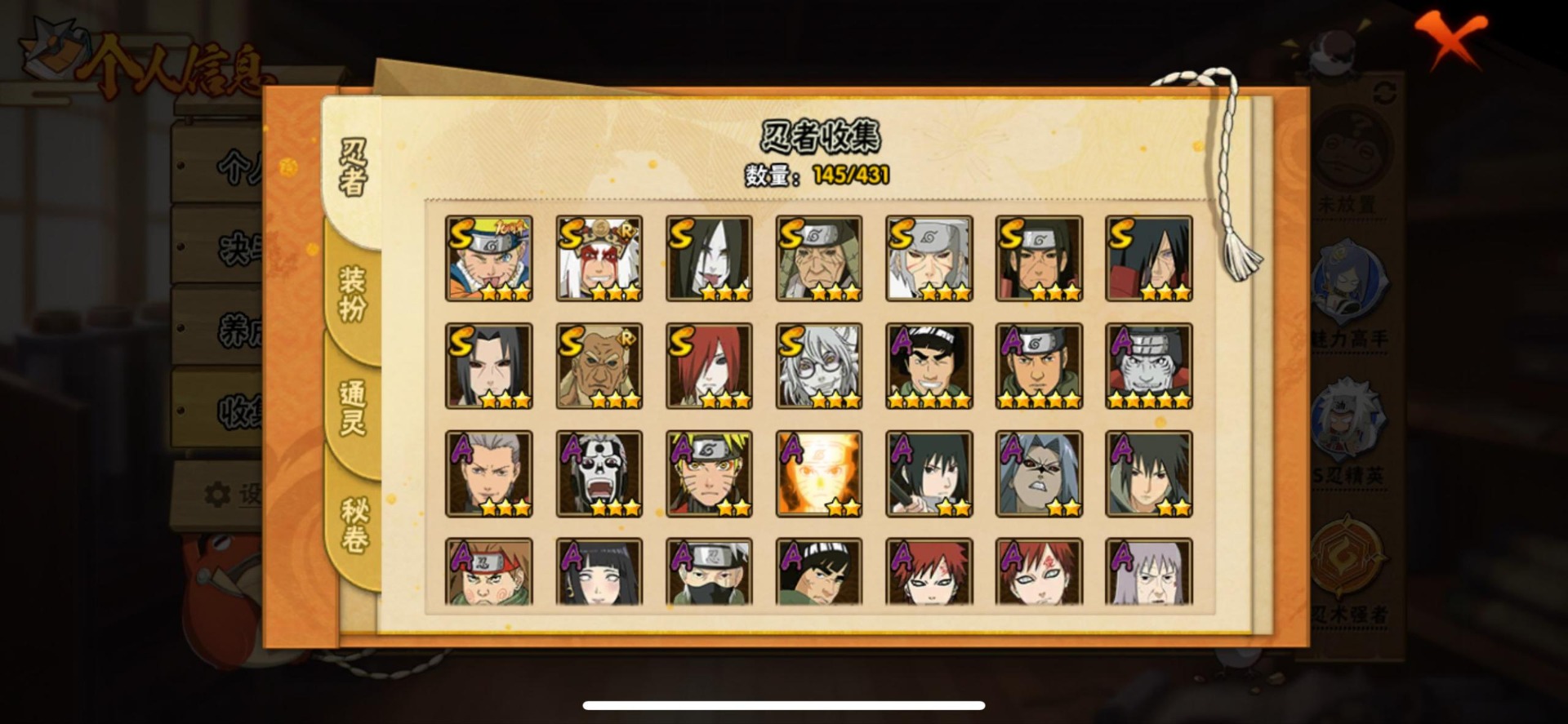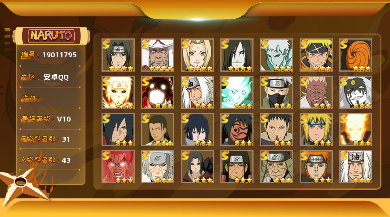 VIP等级V10/S忍数量19/A忍数量42/3星纲手「百豪」