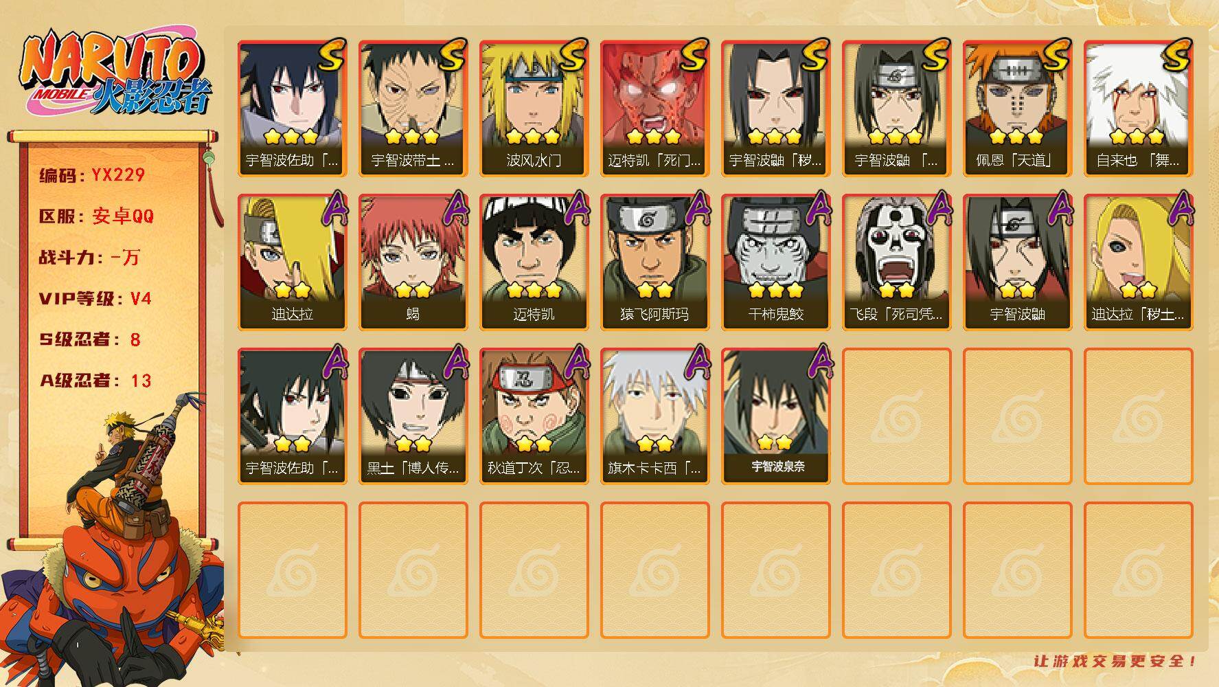 安卓QQ-可二次-入坑小号上手快-S忍者数:8- A忍者数