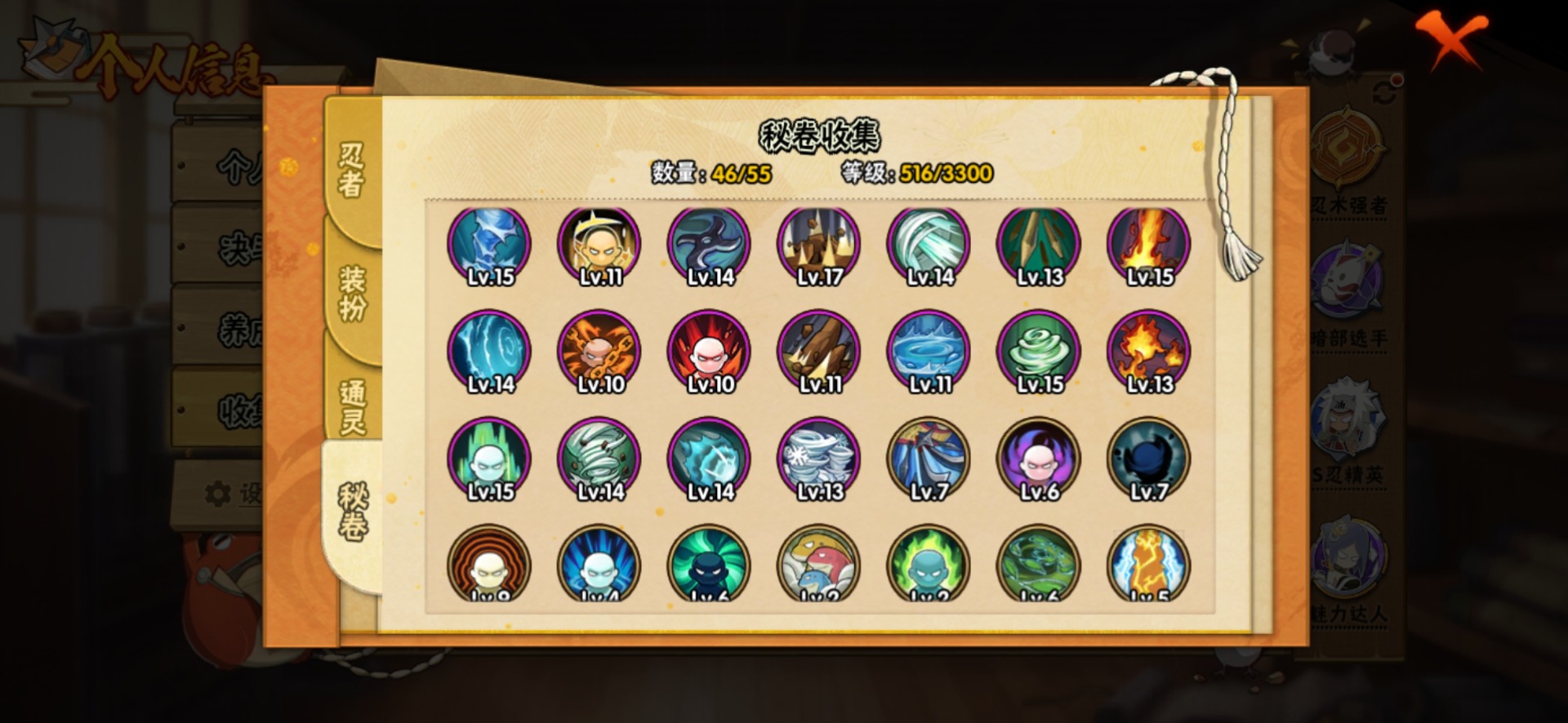 VIP等级V7/战力600W/S忍数量11/A忍数量25/秽土