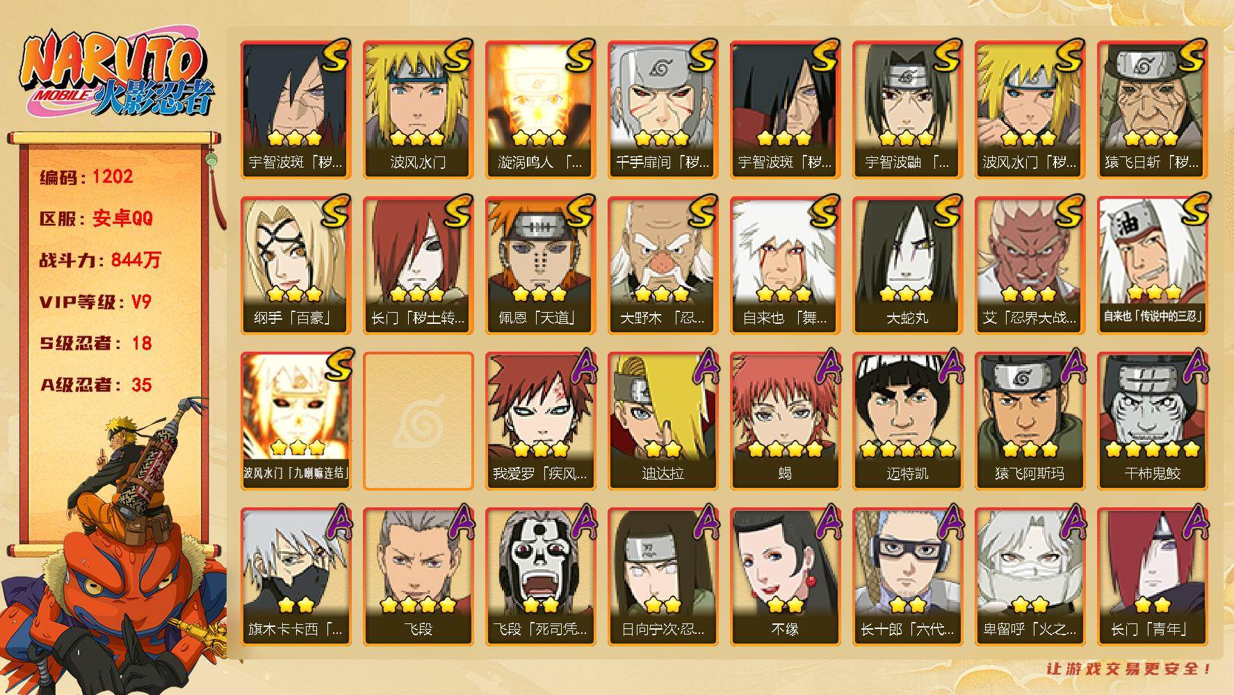 【安卓】仓鼠金币874号,96617金币,32张高招卷,2990限时点券,火影忍者手游QQ区,蜀面自