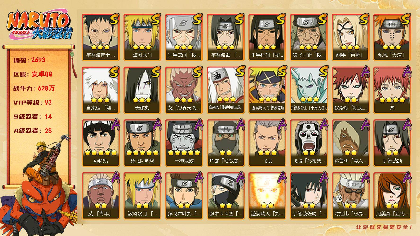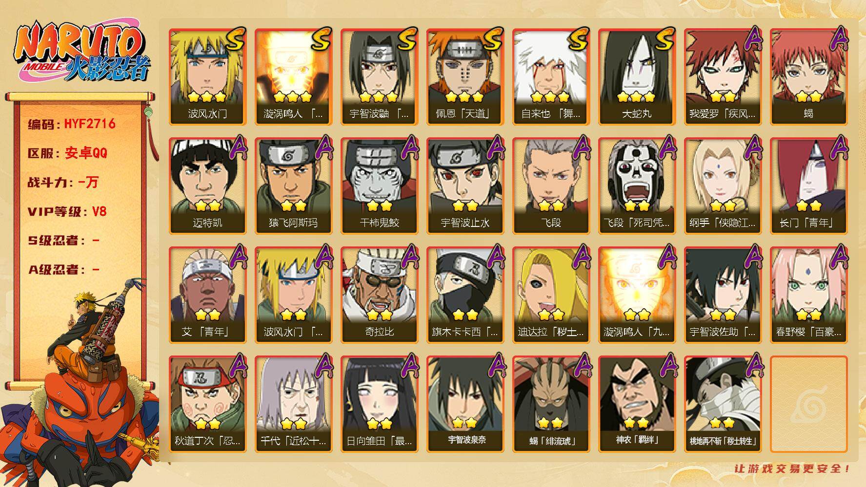 QQ安卓-火影成品号-S忍者数:35- A忍者数:50-战