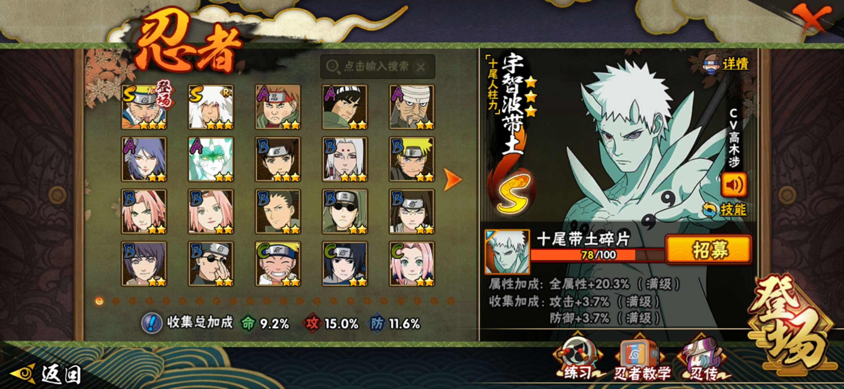 15S级忍者数-38A级忍者数【S级忍者】:千手扉间「秽土转生」(3星)