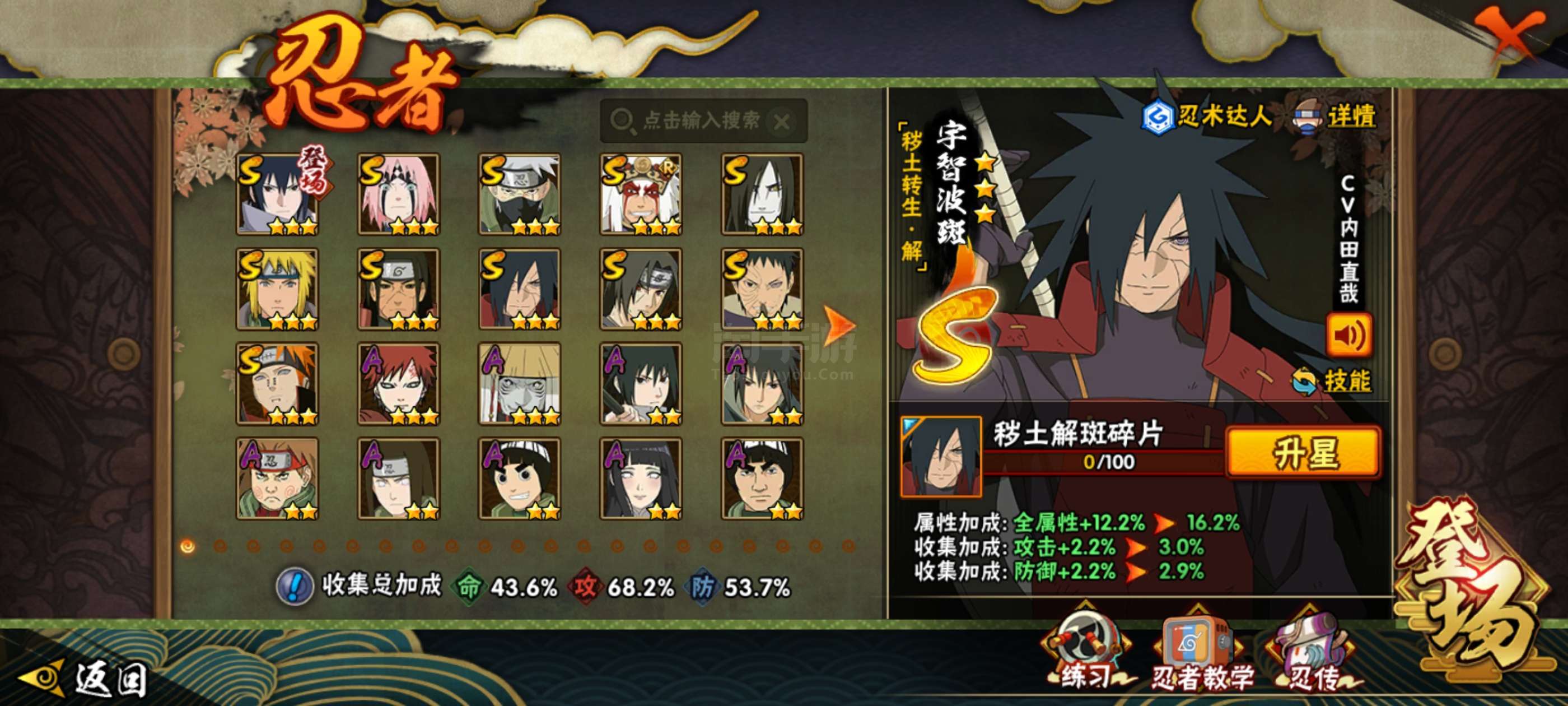 V14 2370万战力 49S级忍者数-72A级忍者数 有熊猫 有648奥义图