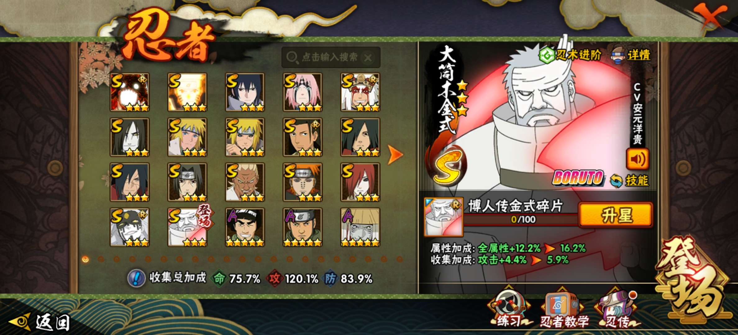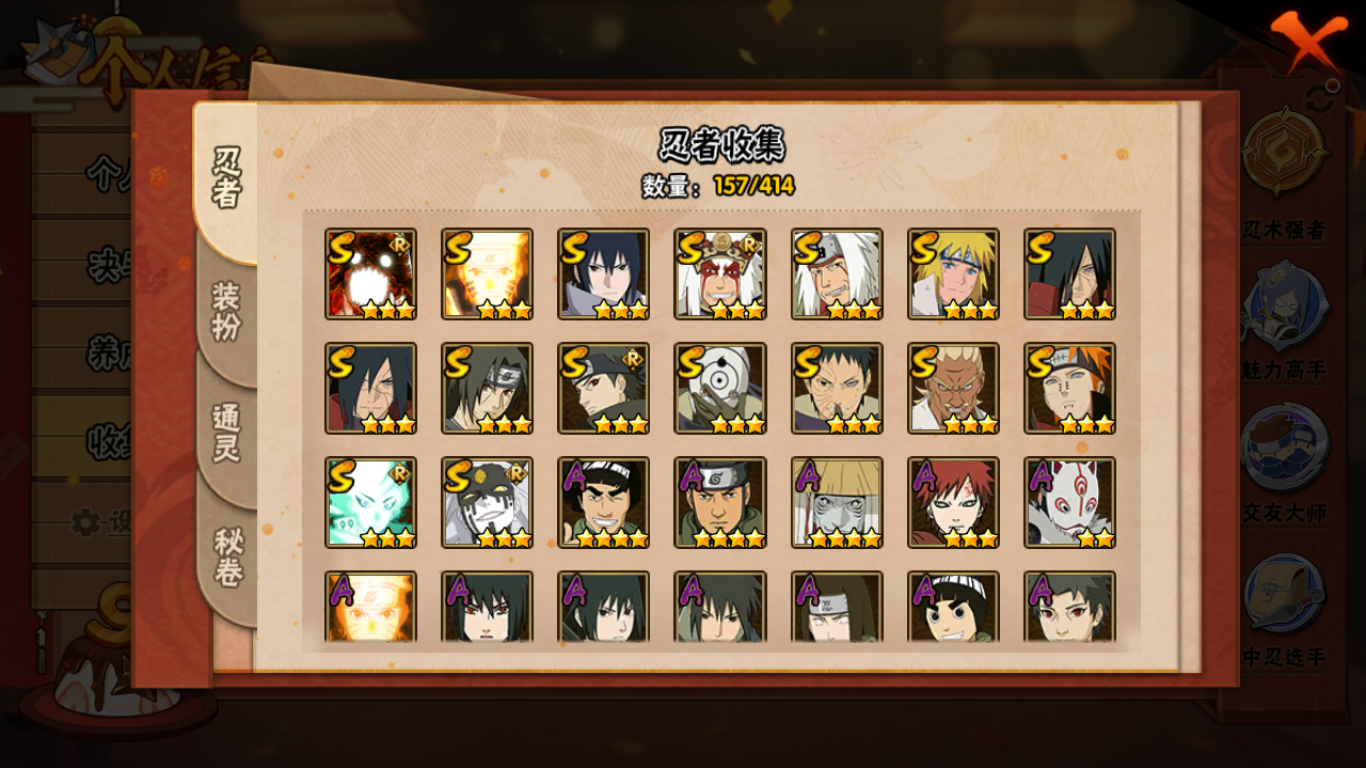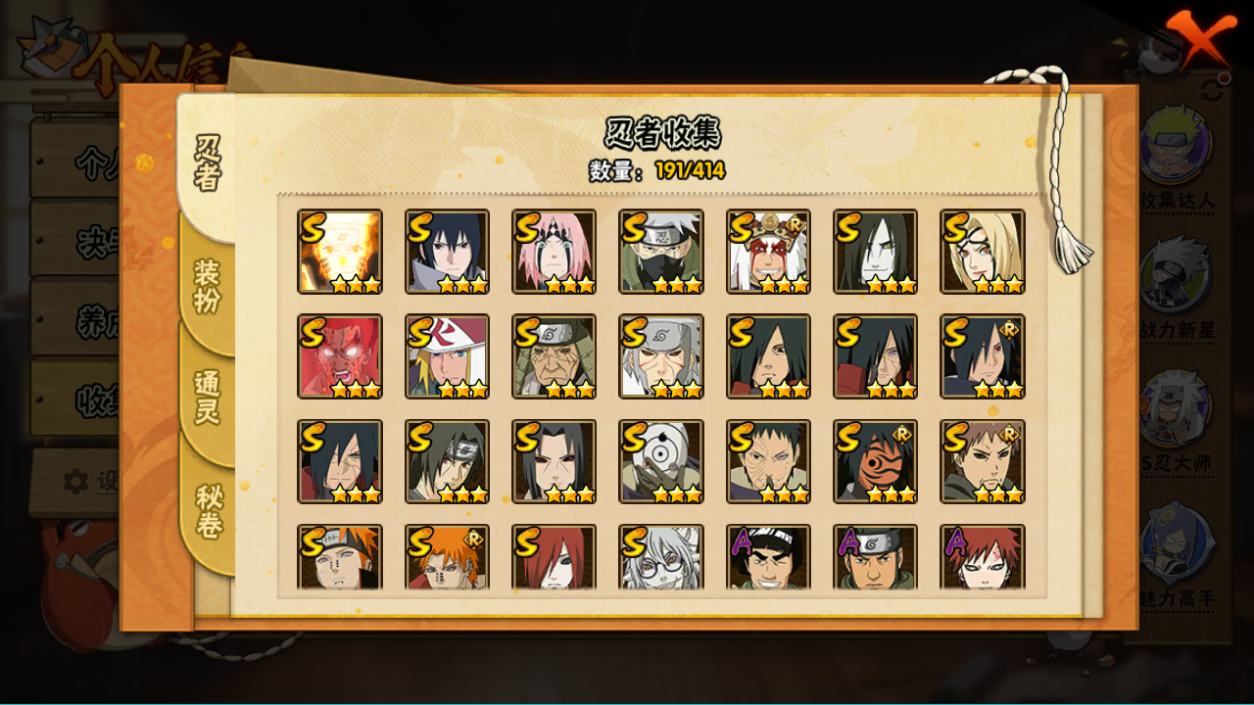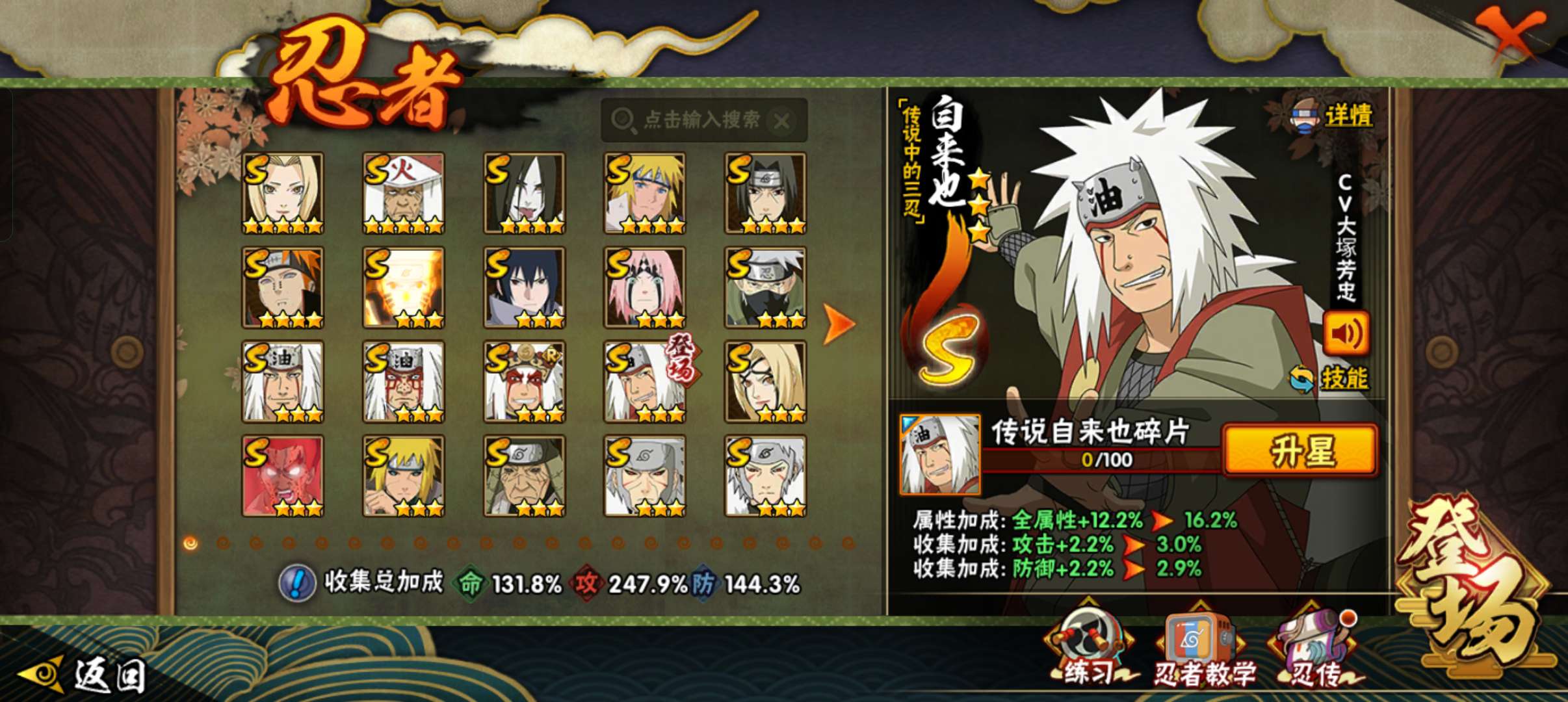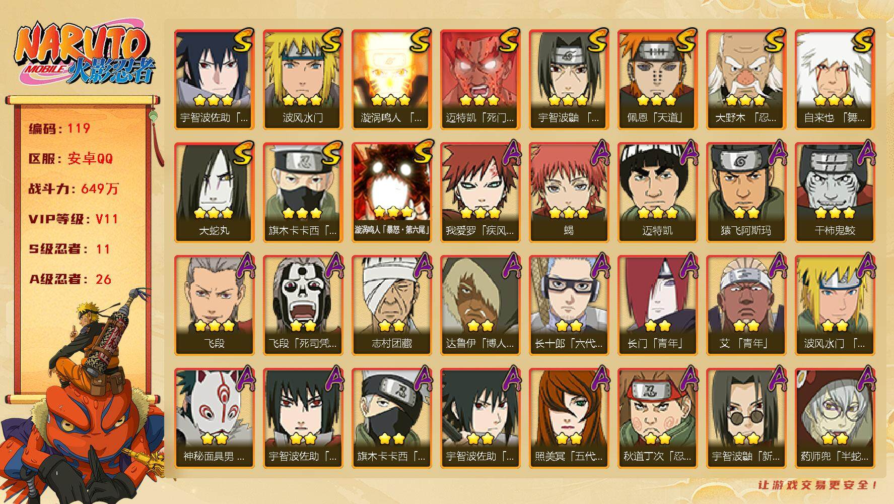 火影忍者【安卓QQ】V11 649万战力 11S-26A 传说自来也60片 春野樱48片 TT1
